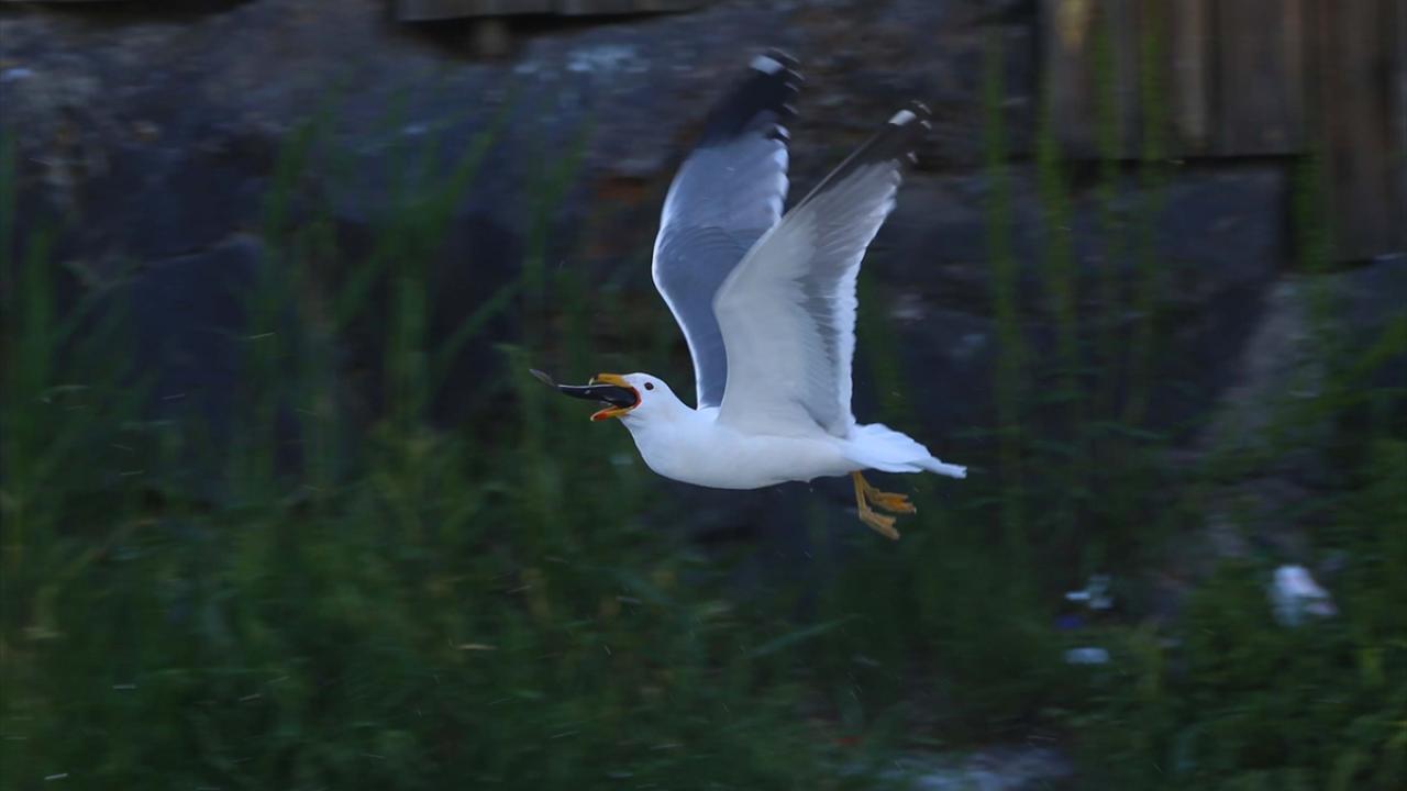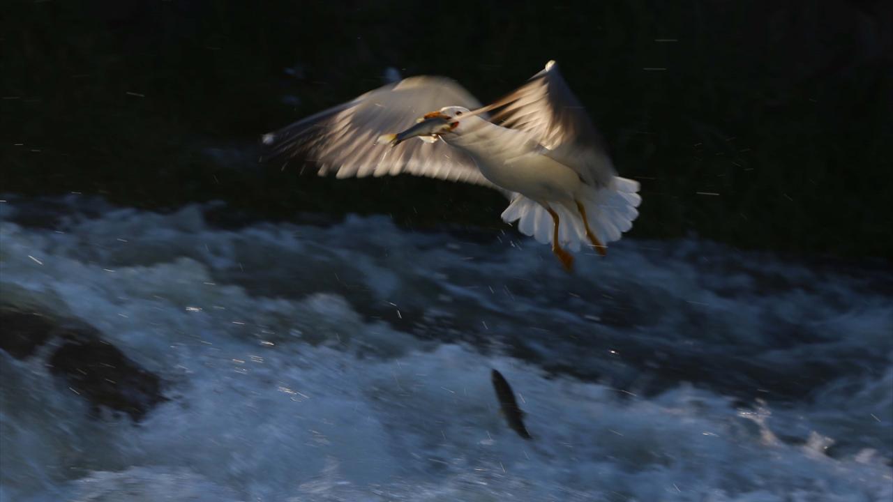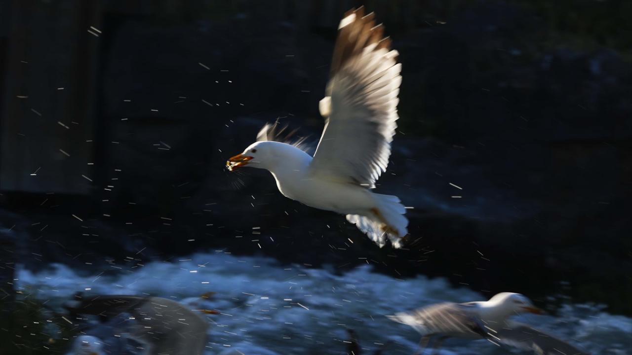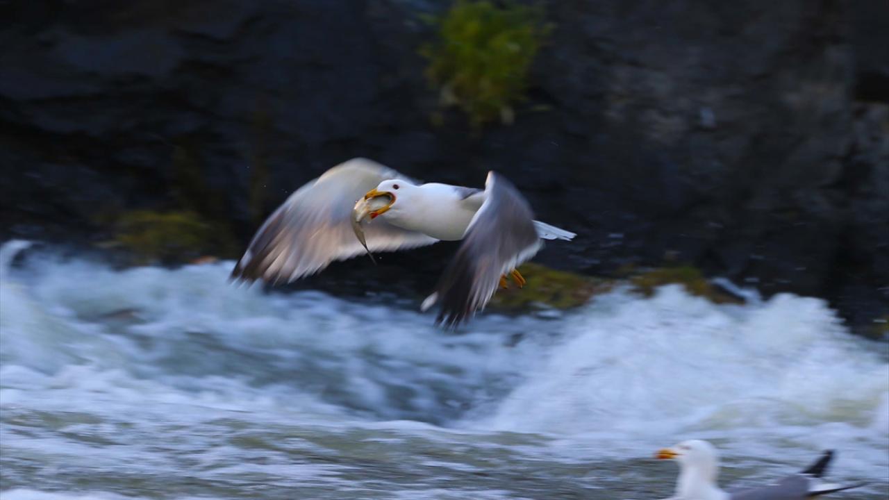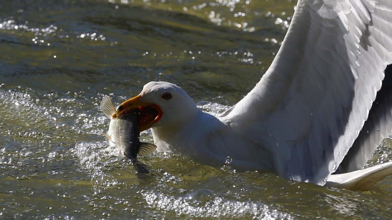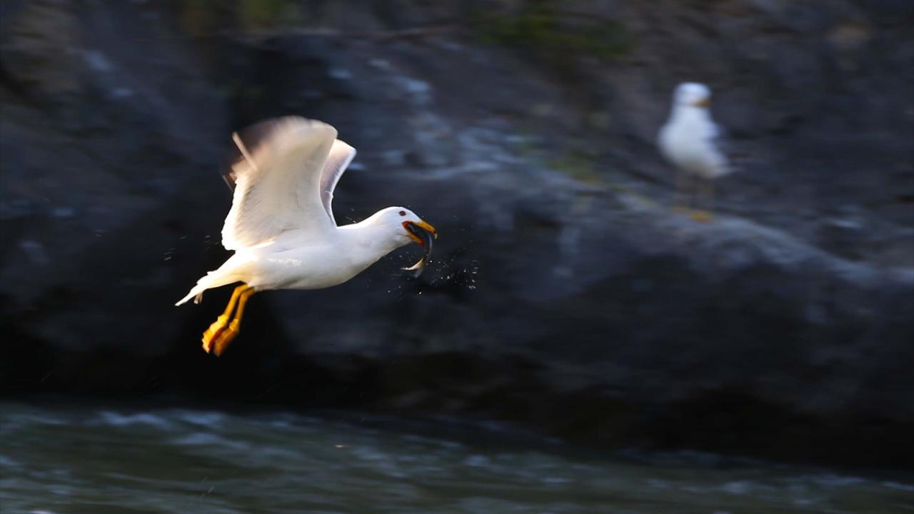 Martıların, göç yolculuğundaki inci kefallerini avlama mücadelesi