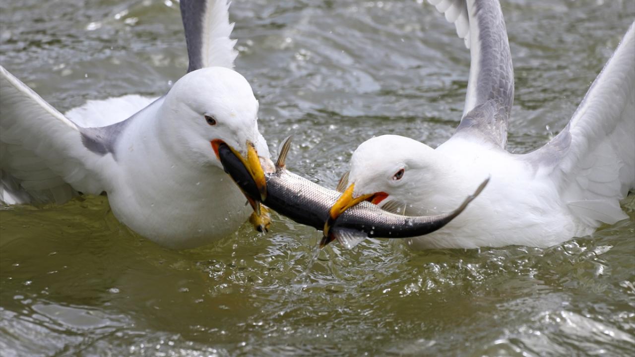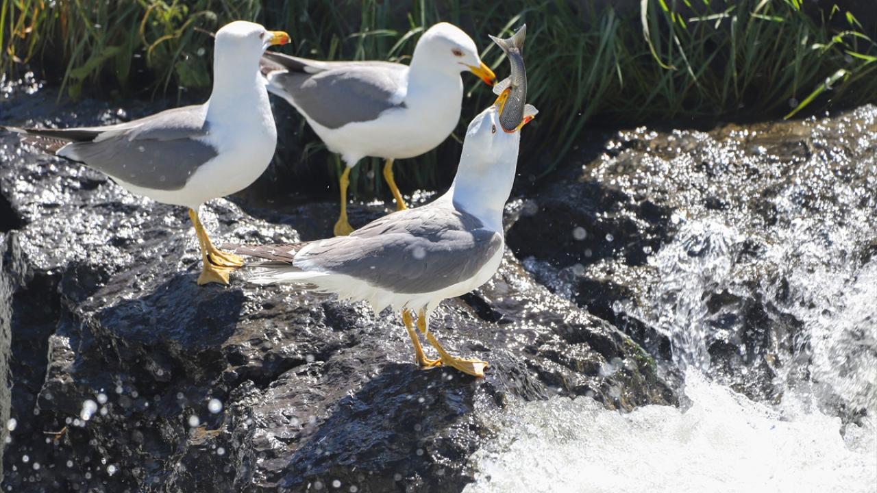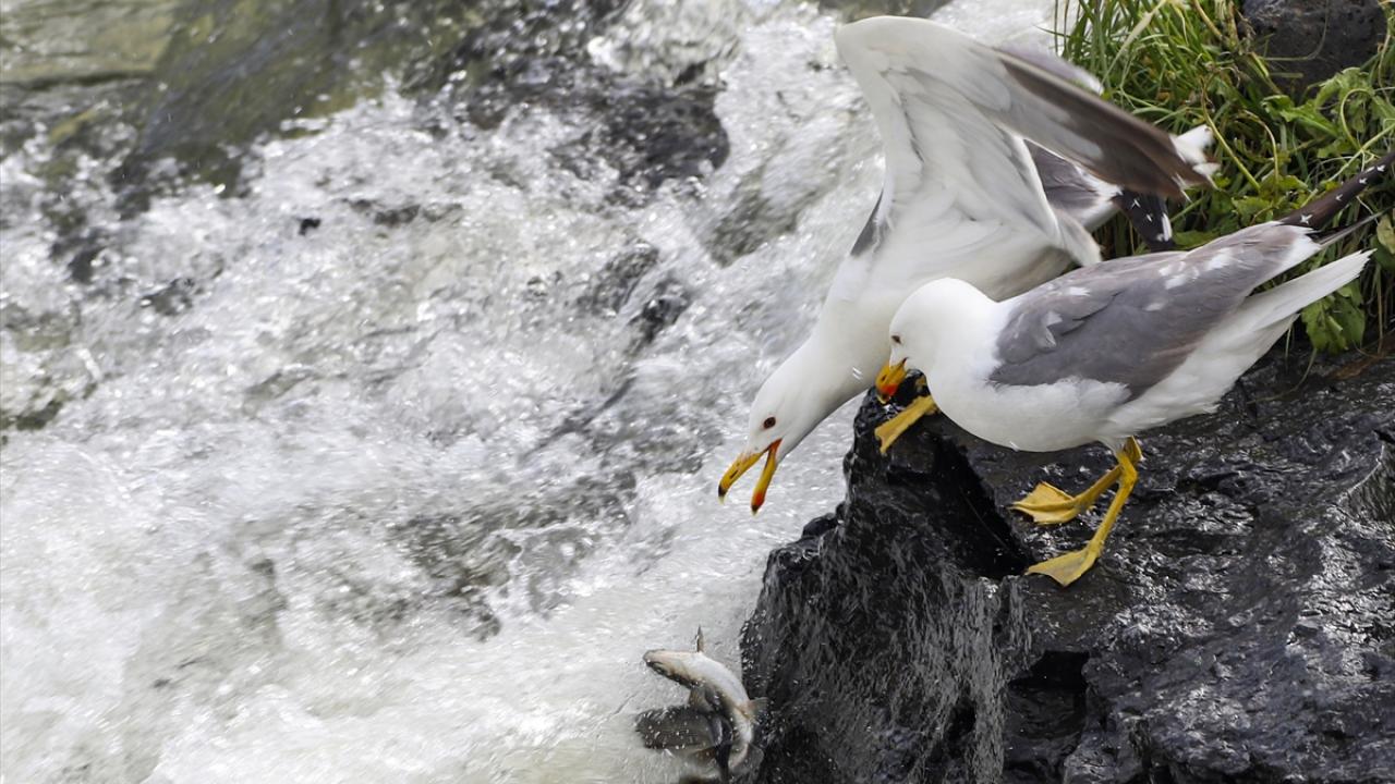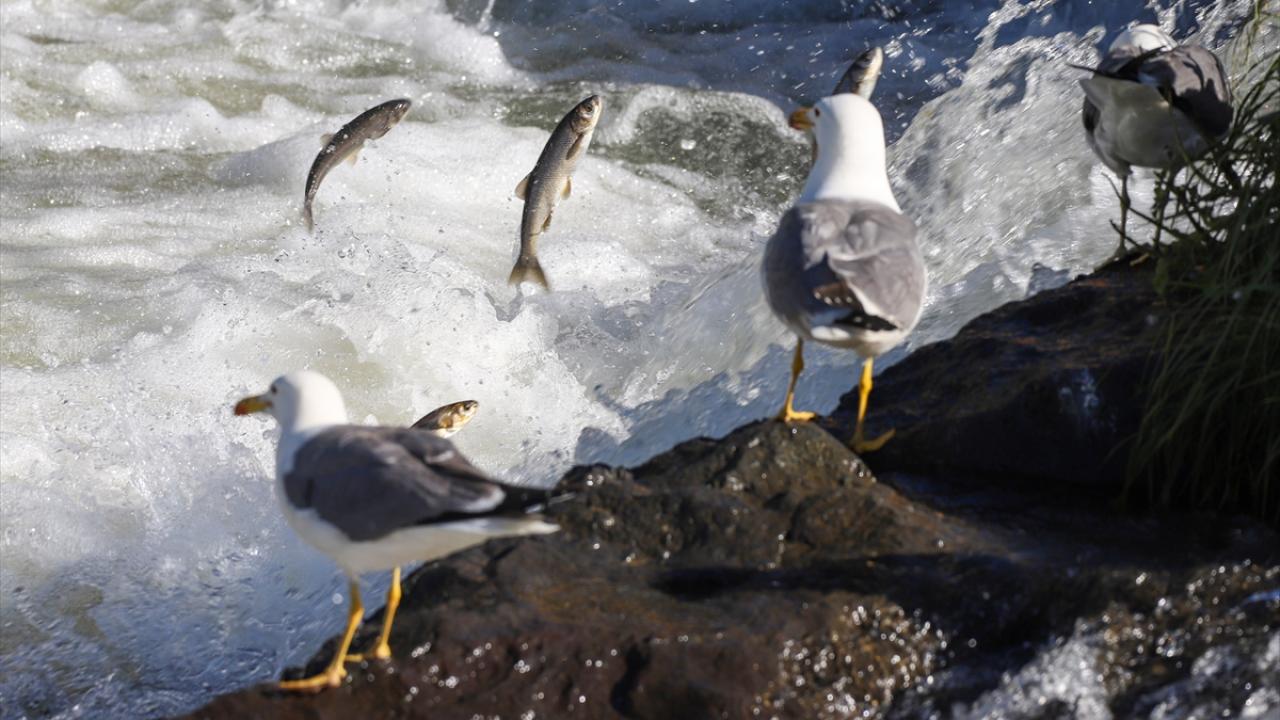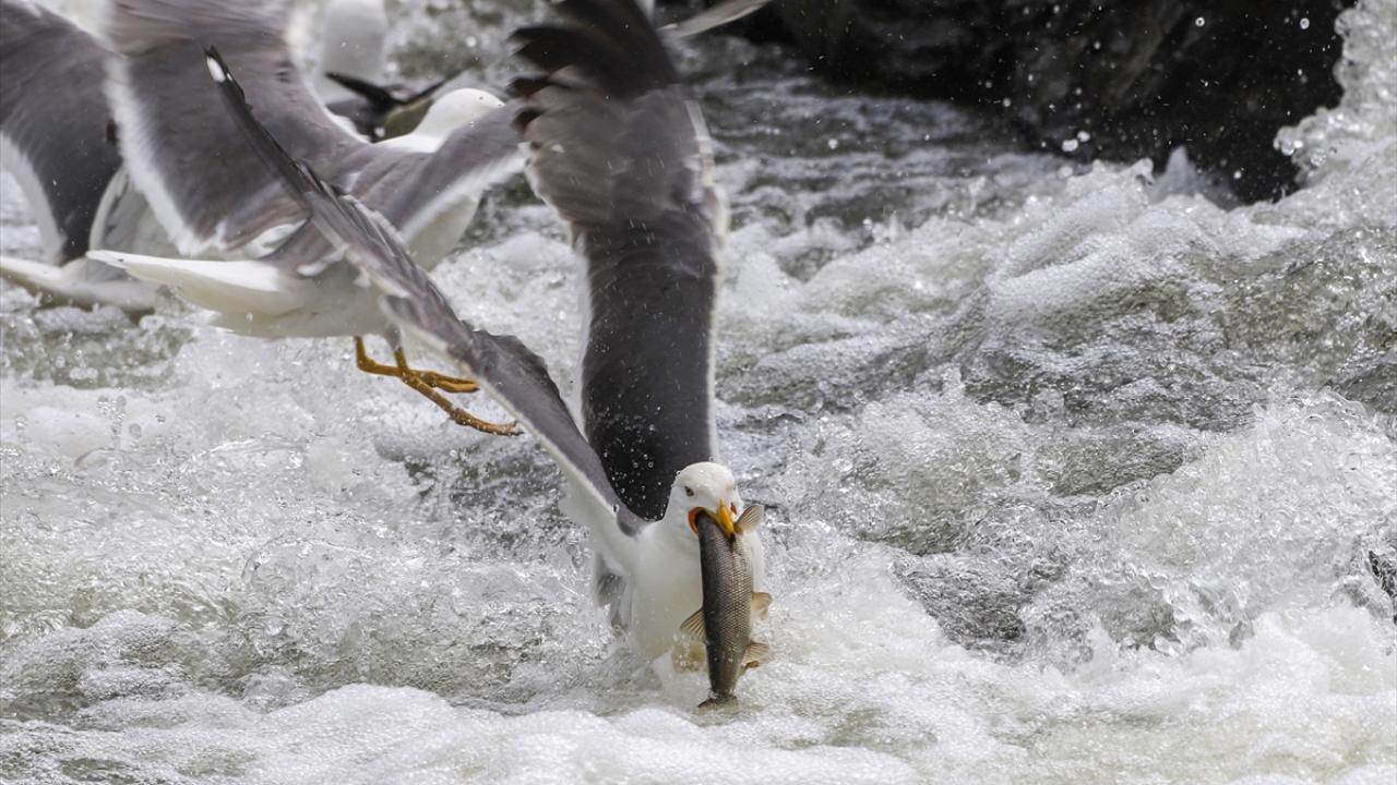 Martıların, göç yolculuğundaki inci kefallerini avlama mücadelesi