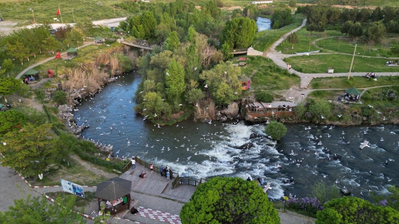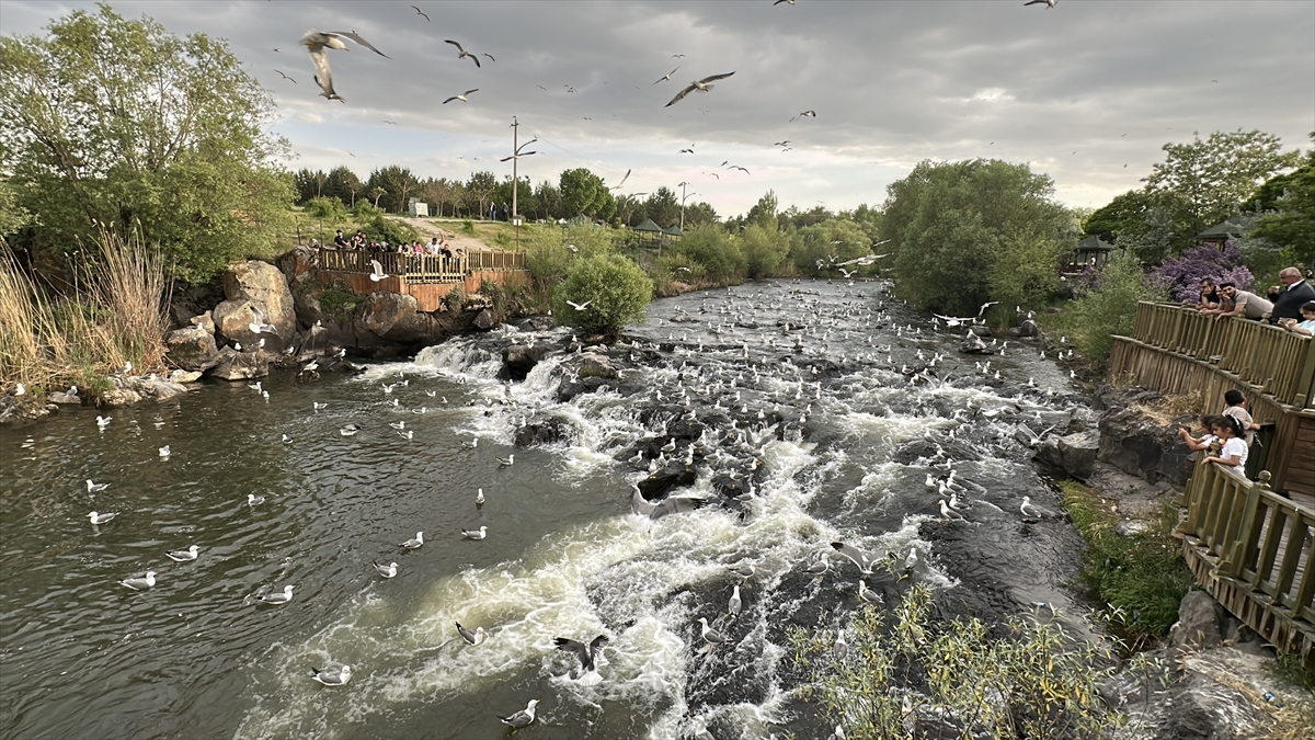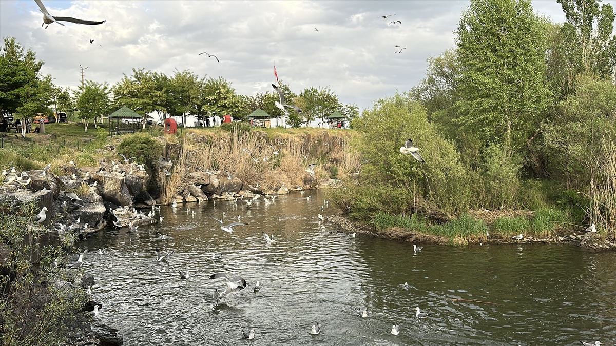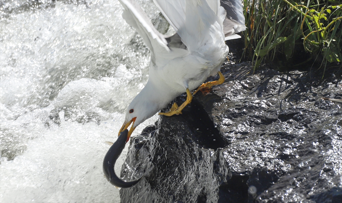 Balık göçünün yoğun yaşandığı Erciş ilçesindeki akarsulara akın eden martılar, inci kefallerini avlayarak besleniyor.