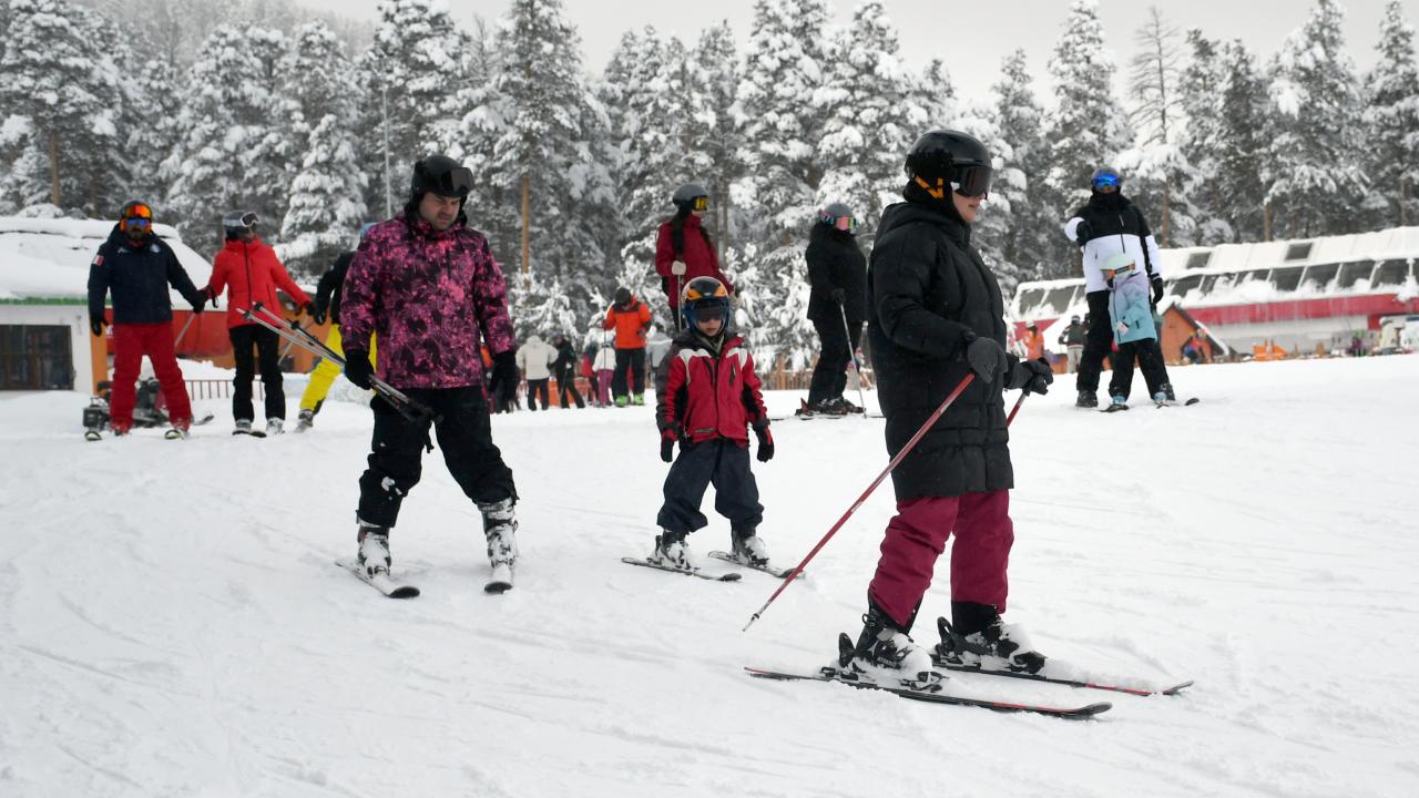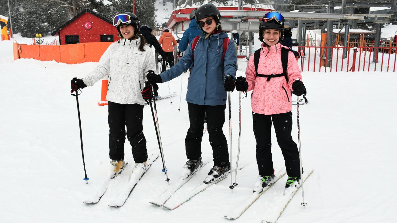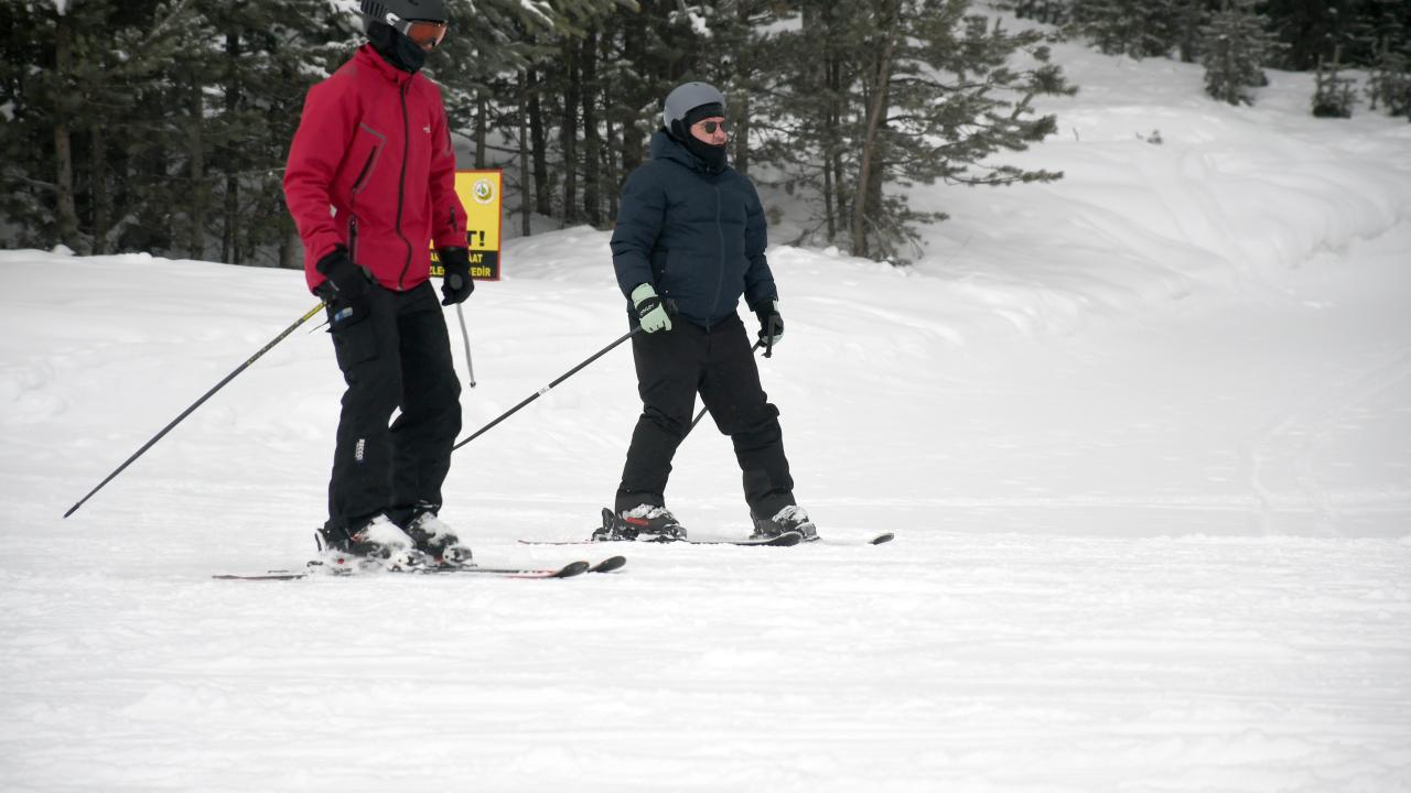 Kar yağışının aralıklarla devam ettiği merkeze gelen yerli ve yabancı turistler, kayak ve snowboard yapıyor, kızakla kaymanın keyfini çıkarıyor.