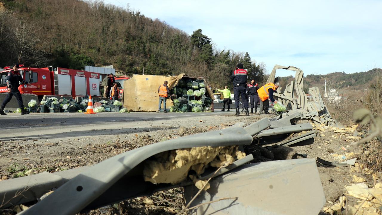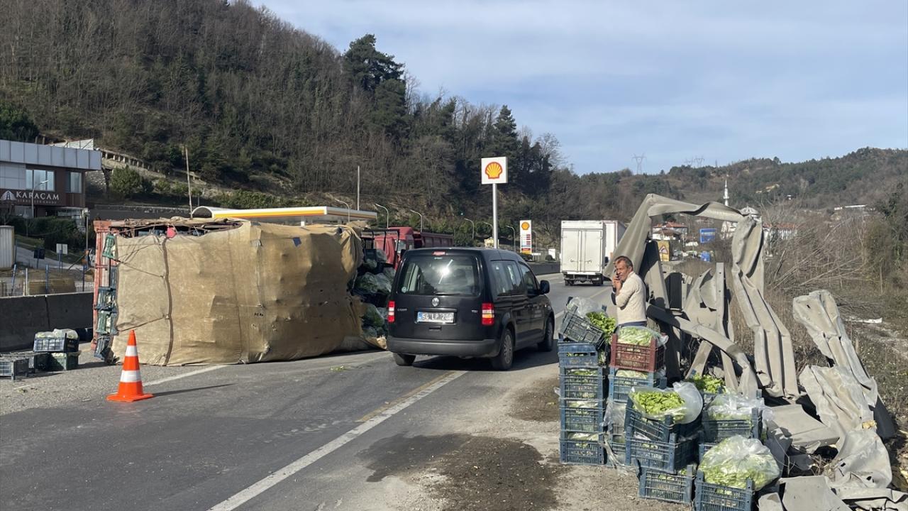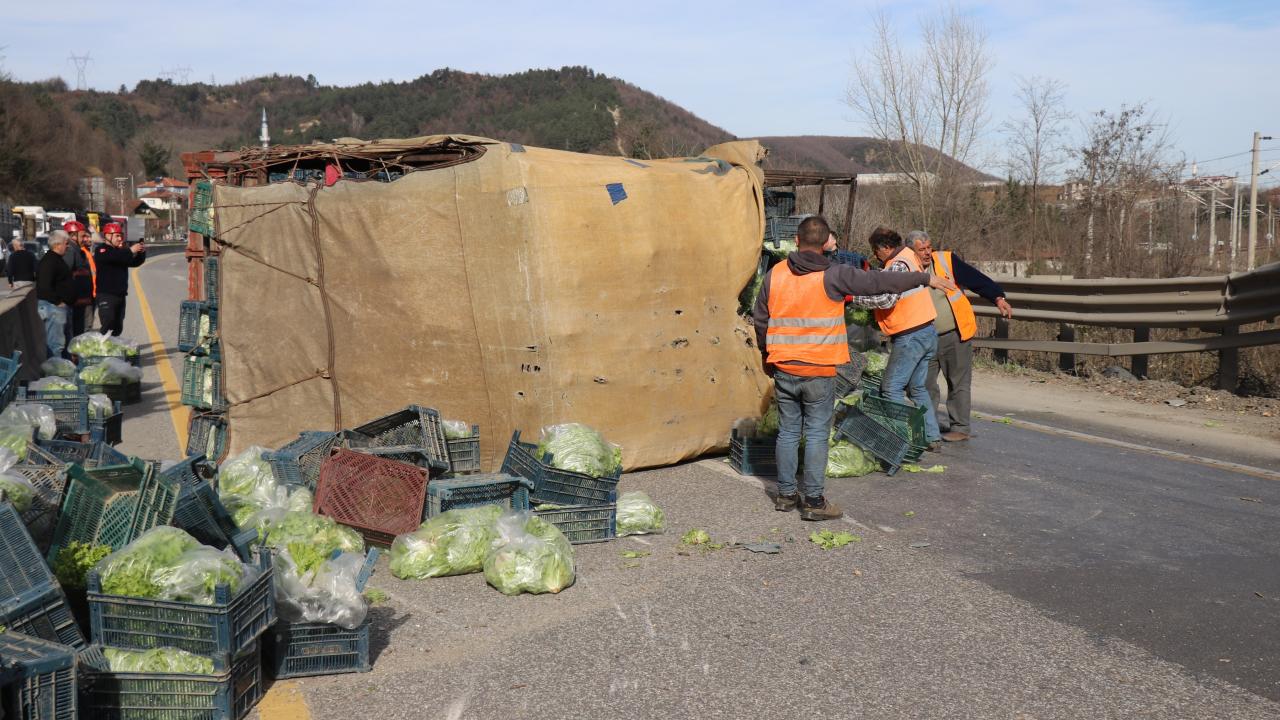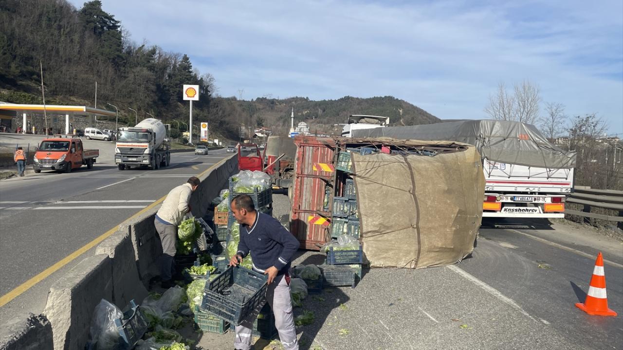 Sakarya'nın Geyve ilçesinde devrilen marul yüklü kamyonet ulaşımı aksattı.