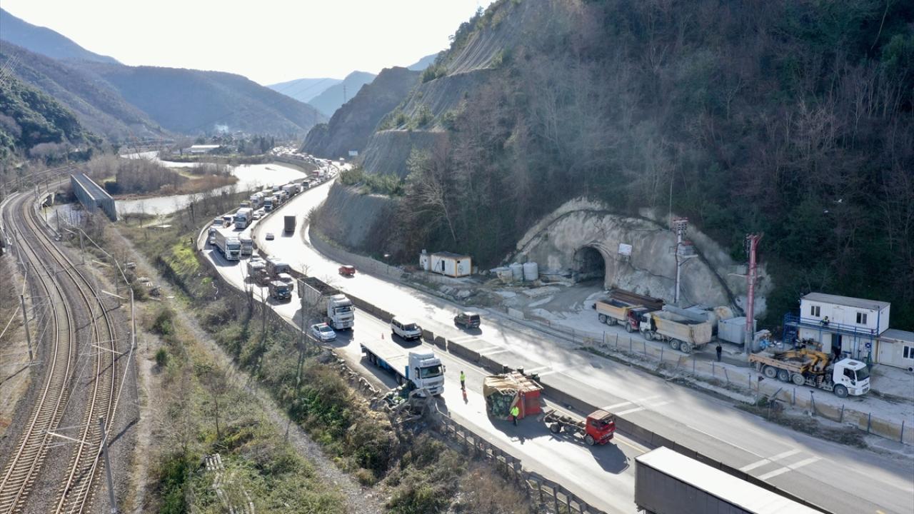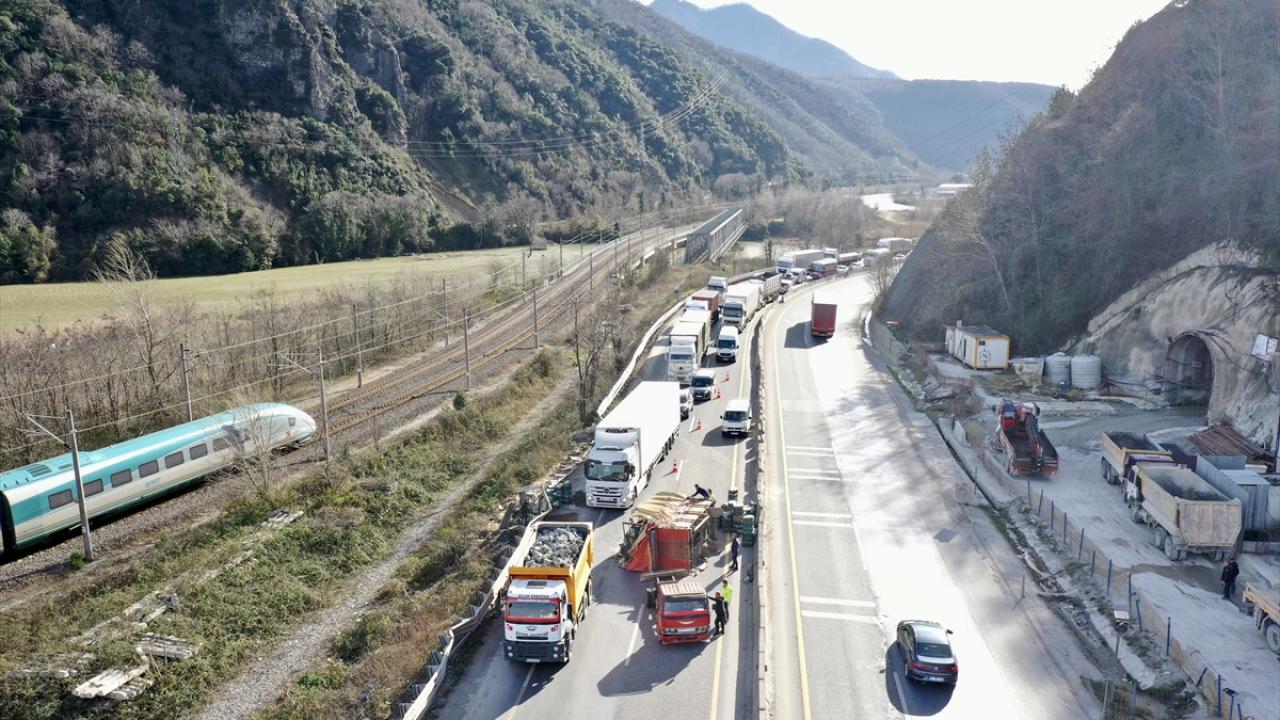 Karayolları ekiplerinin temizlik çalışmasının ardından ulaşım tek şeritten kontrollü şekilde sağlanmaya başlandı.
