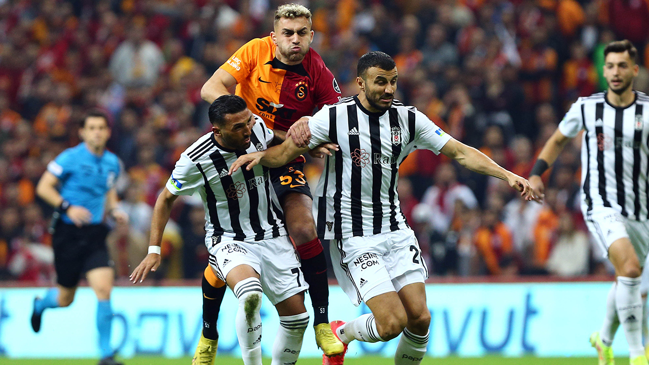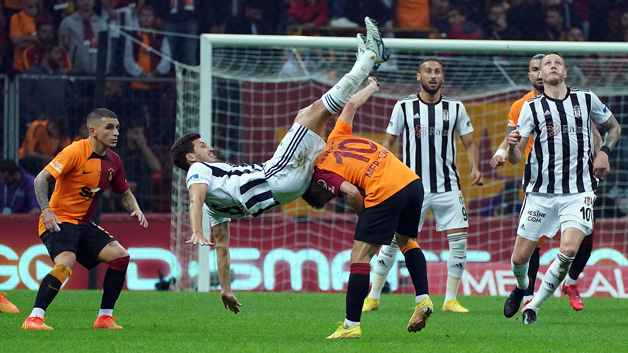 Bir pozisyonda Galatasaraylı oyuncu Abdülkerim Bardakcı, Beşiktaşlı oyuncu Cenk Tosun ile mücadele etti.