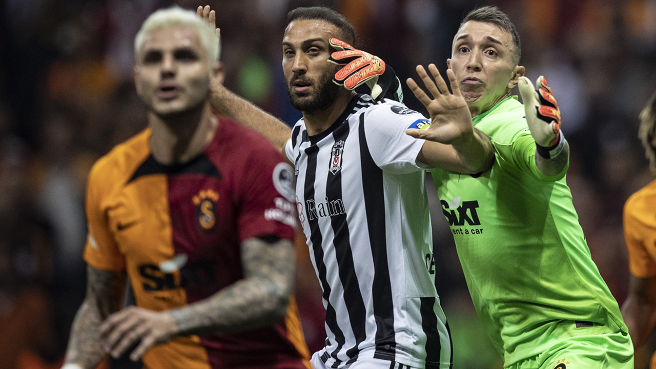 Bir pozisyonda Galatasaraylı oyuncu Mauro Icardi ve kaleci Fernando Muslera, Beşiktaşlı oyuncu Cenk Tosun ile mücadele etti.