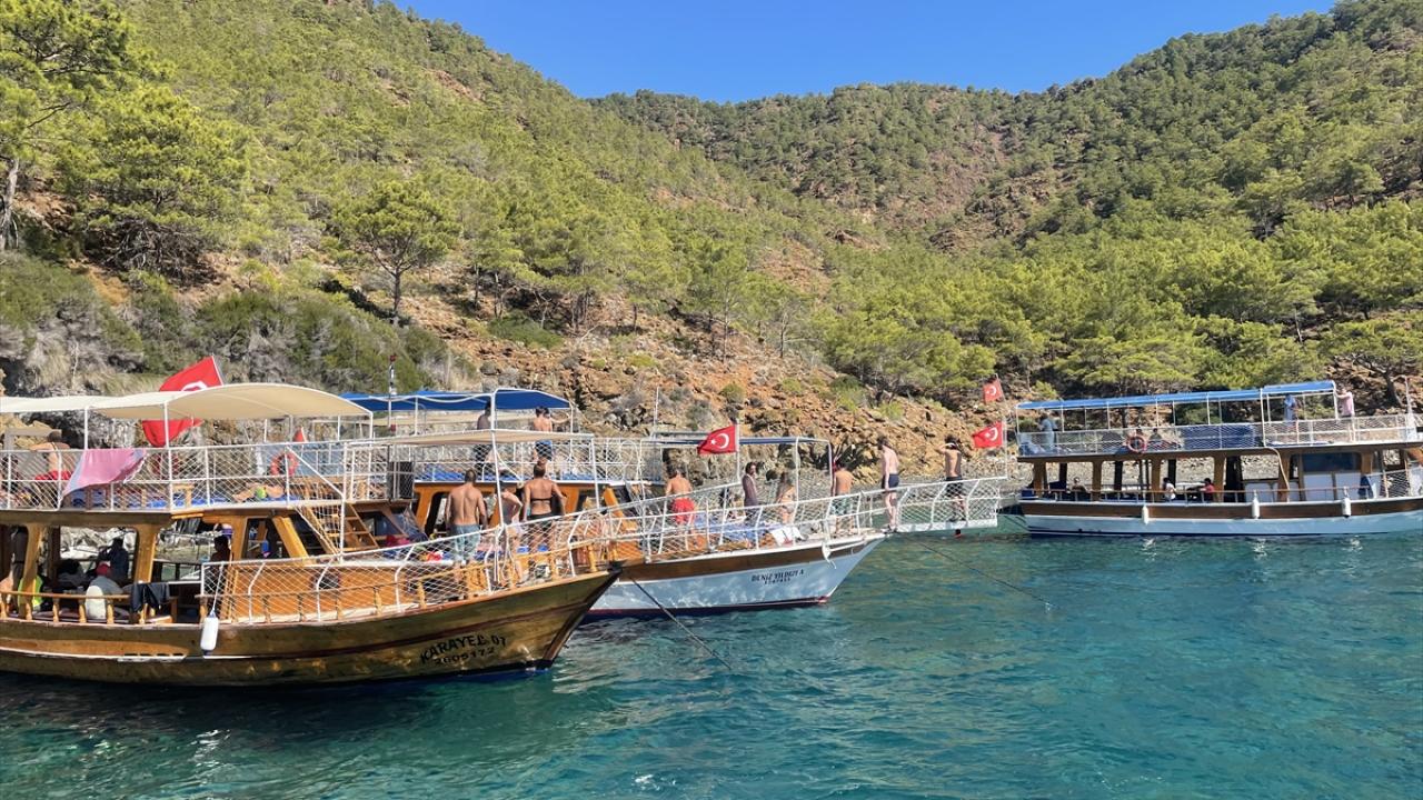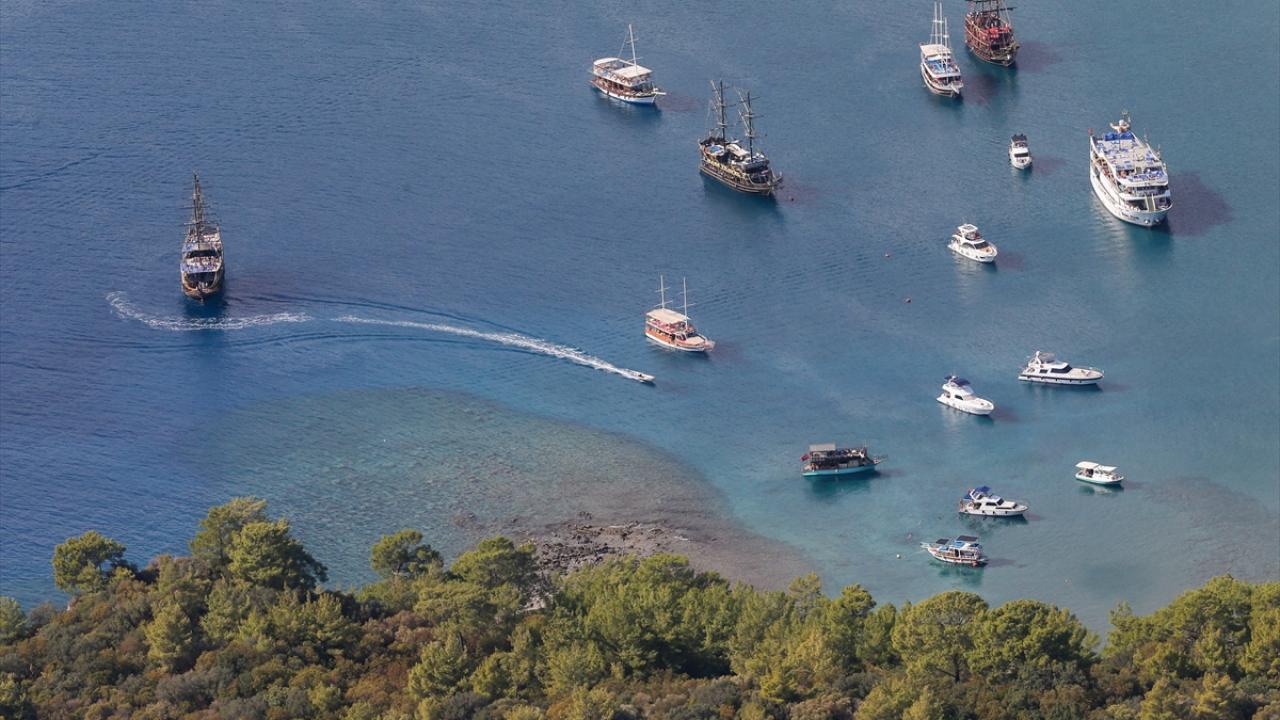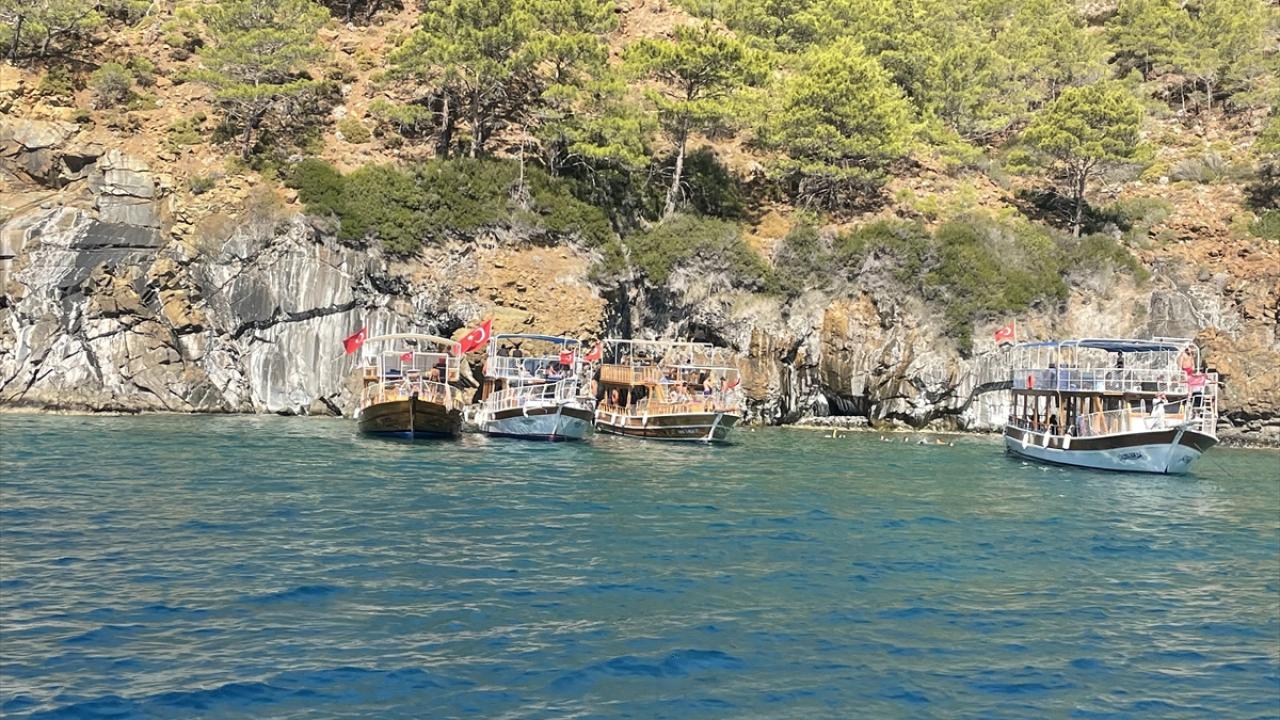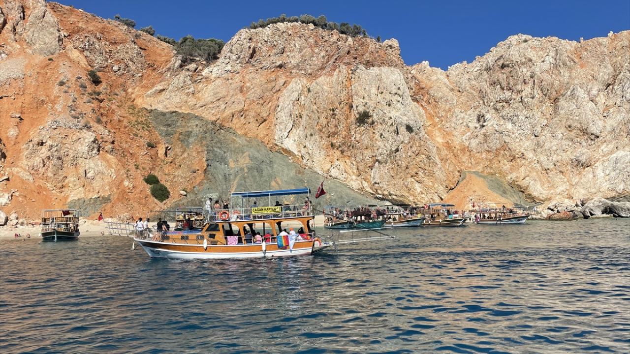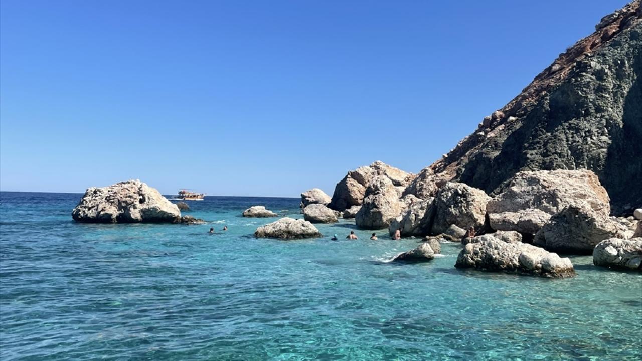 Yeni tip koronavirüs (Covid-19) nedeniyle sıkı tedbirlerin uygulandığı teknelere ateş ölçümü yapılarak alınan misafirler, Sazak, Ceneviz, Kral Koyu, Faselis ve Korsan koyları, Kekova Batık Kent, Suluada ve Sıçan Adası başta olmak üzere koy, ada ve mağaraları görme imkanı buluyor.