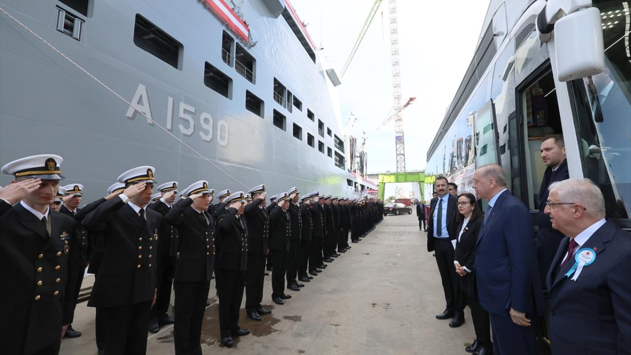Cumhurbaşkanı Recep Tayyip Erdoğan'ın katılımıyla Yalova Sefine Tersanesi'nde gerçekleştirilen "Mavi Vatan'da Güç: Yeni Deniz Platformları Teslimat Töreni"nde, gemilerde görevli bahriyeli personel, görev başı yaptı.