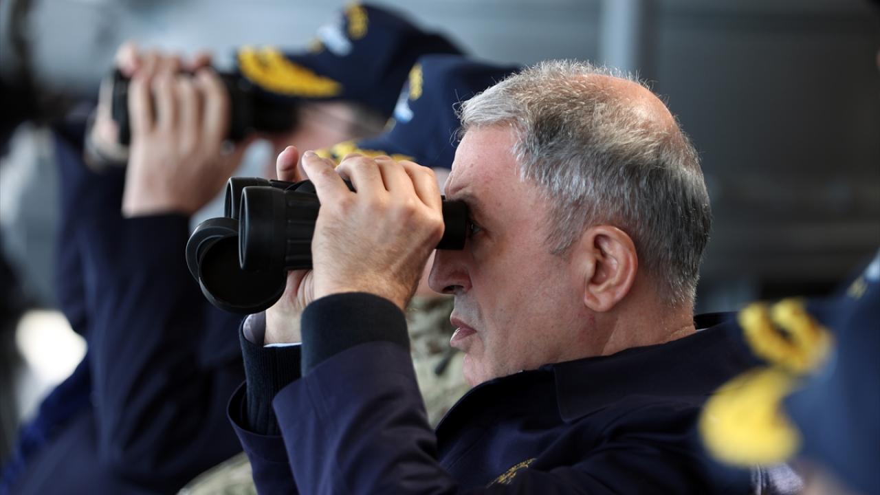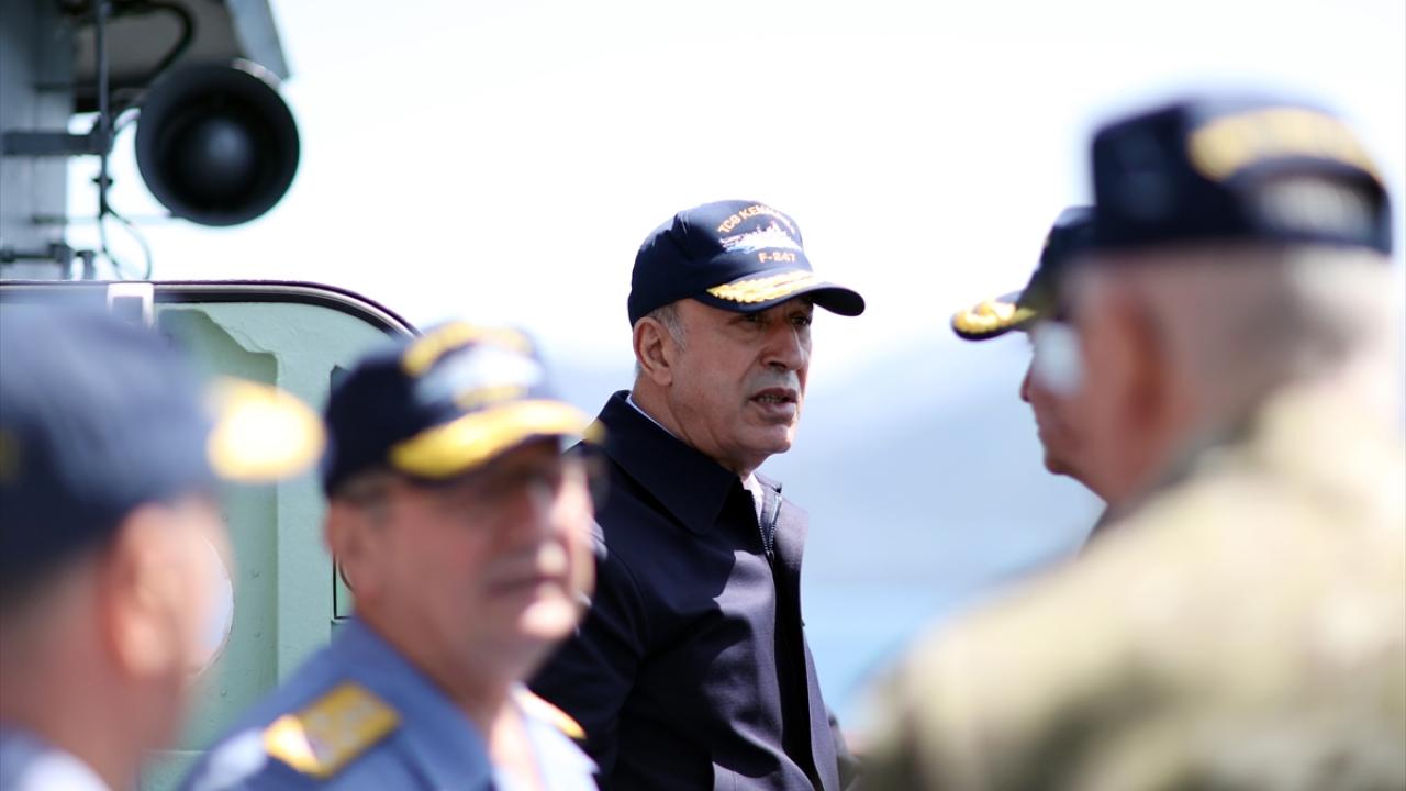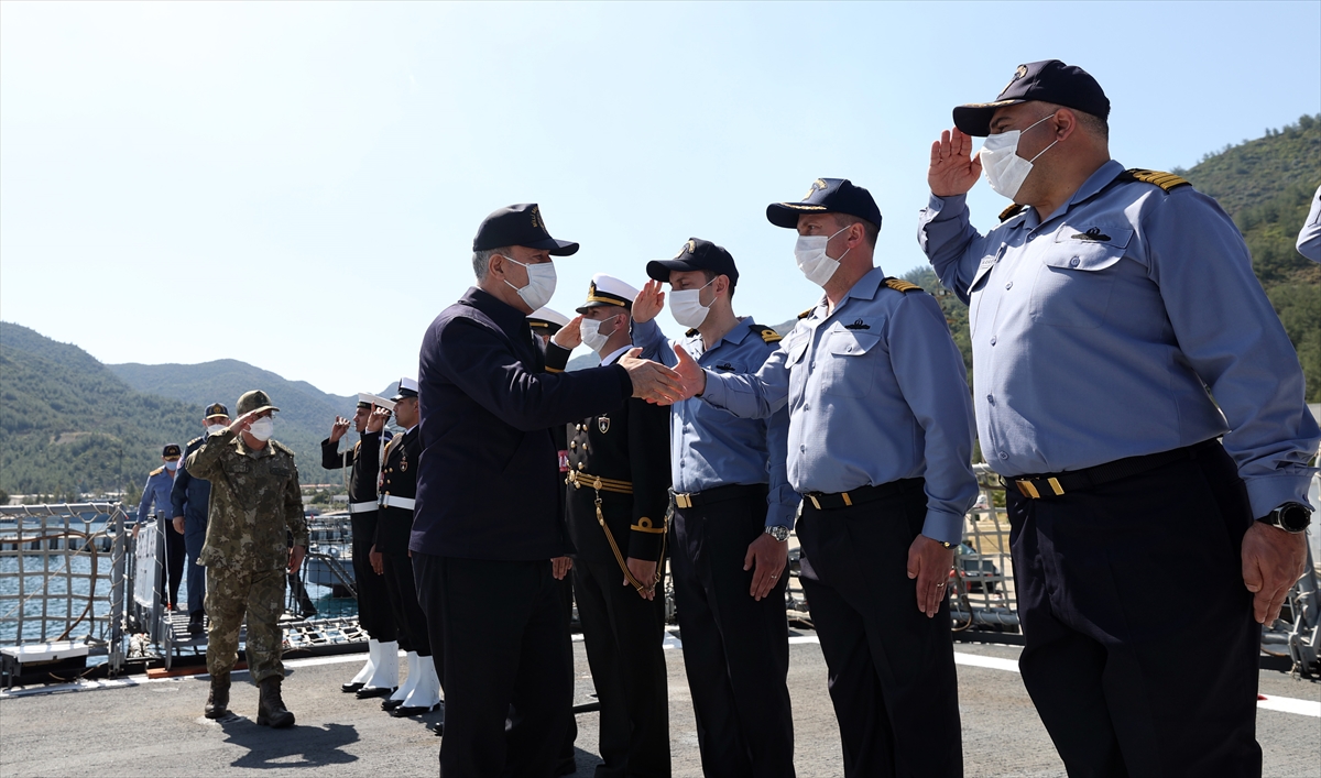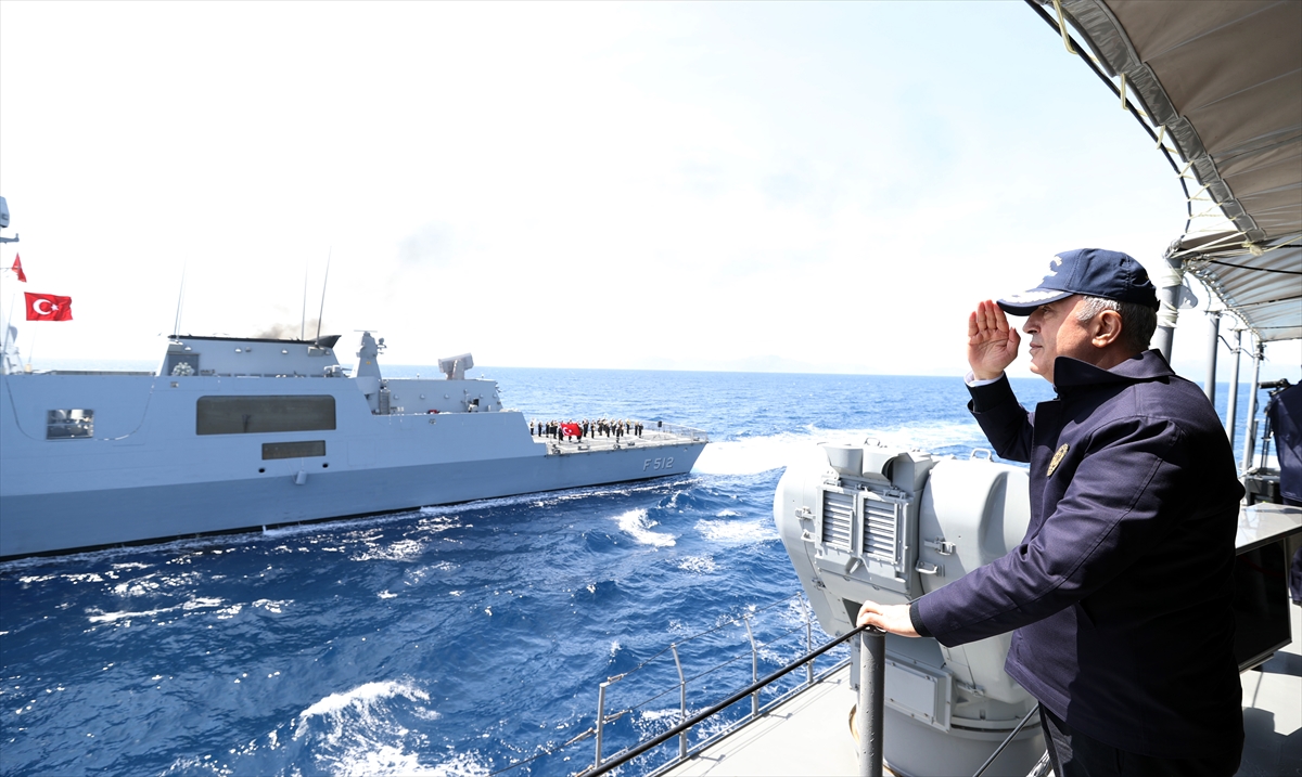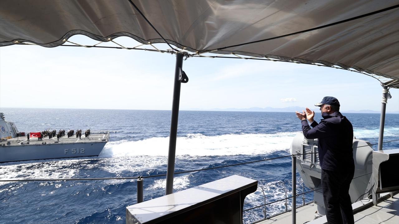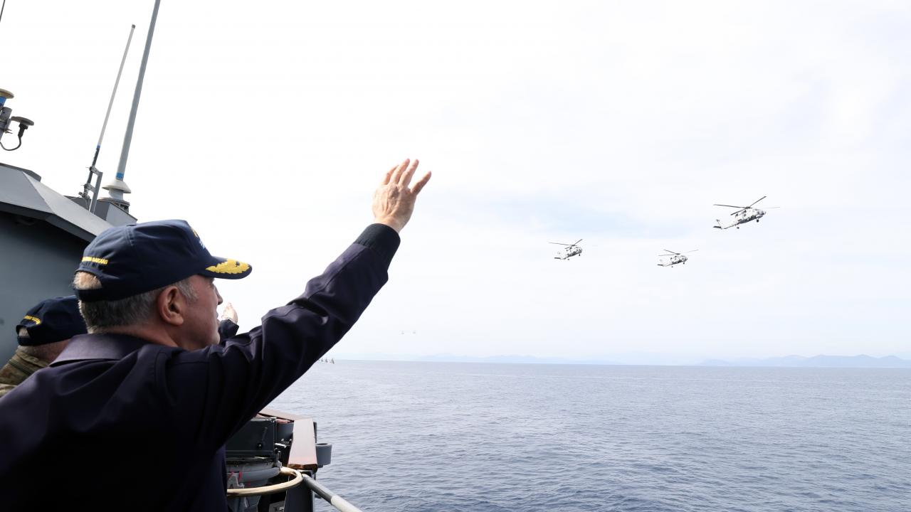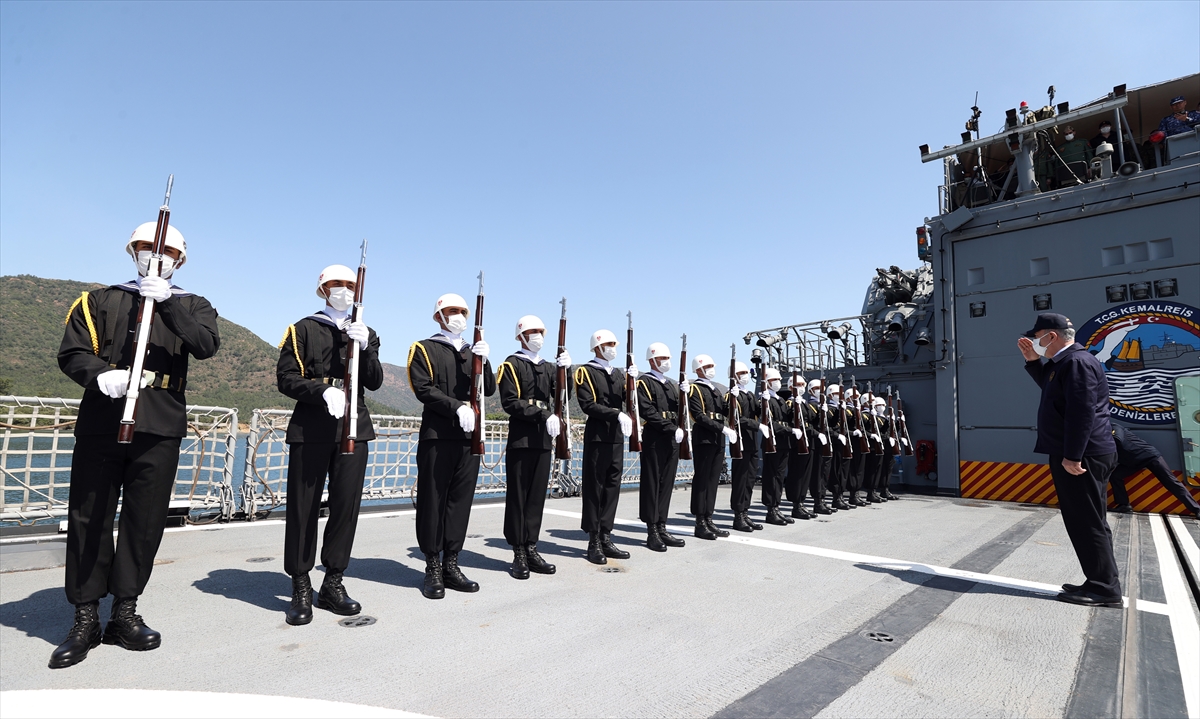 SAT harekatının tamamlanmasının ardından harekata katılan unsurlar tatbikatın sancak gemisindeki Bakan Akar’a selamlama geçişi yaptı.