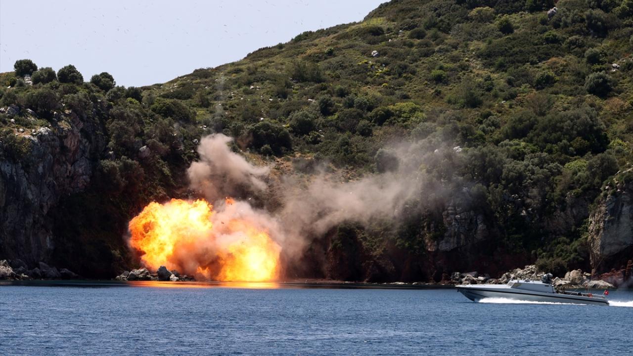 Jenerik bir senaryo kapsamında gerçekleştirilen faaliyetler kapsamında ilk olarak denizde tespit edilen serbest mayın imha edildi.