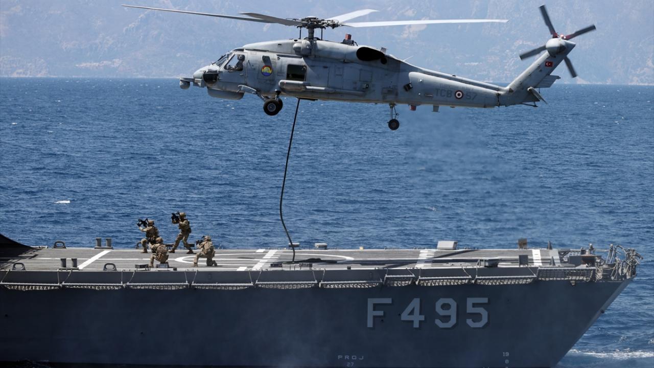 SAT Komutanlığının bir diğer unsuru ise helikopterden gemiye serbest iniş yaparak operasyon düzenledi.