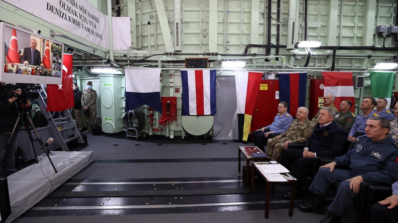 Cumhurbaşkanı Recep Tayyip Erdoğan’ın video konferans yöntemiyle tatbikata katılan gemilerin komutanlarına hitabının ardından, Seçkin Gözlemci Günü faaliyetlerinin birinci safhası tamamlandı.