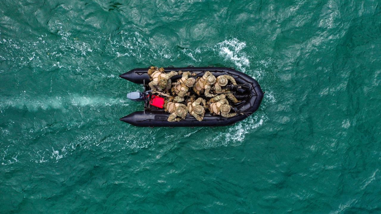 Su üstünden sadece SAT Komutanlığı envanterinde bulunan özel deniz vasıtaları olan ATAK ve SAT botları ile intikal edebilen timler, Mavi Vatan`ın her köşesinde istendiği zaman istendiği şekilde hazır bulunuyor.