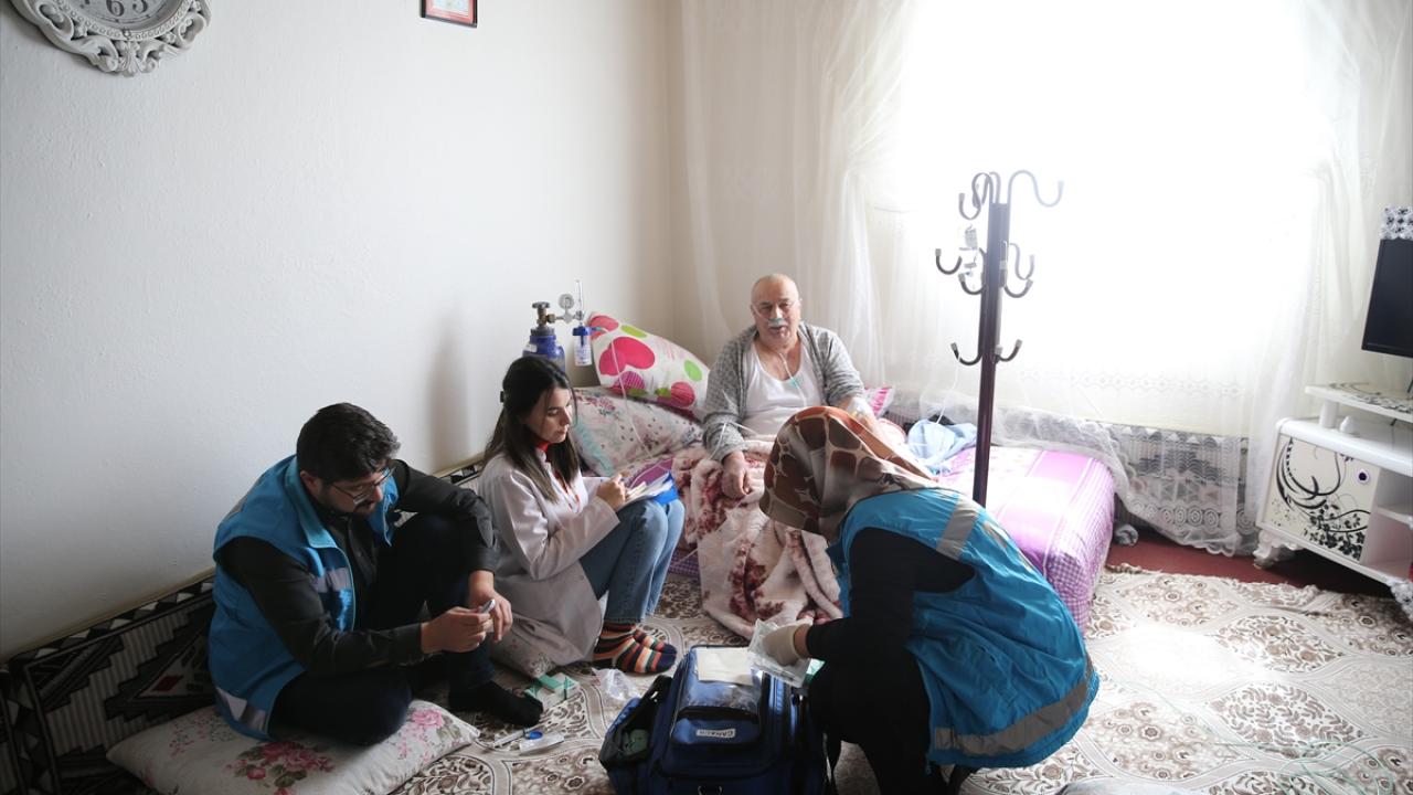 Muş Devlet Hastanesi bünyesindeki birimde görevli 17 kişiden oluşan 5 ekip, sisteme kayıtlı yaşlı, yatağa bağımlı ve kronik rahatsızlığı olan hastaların yardımına koşuyor.