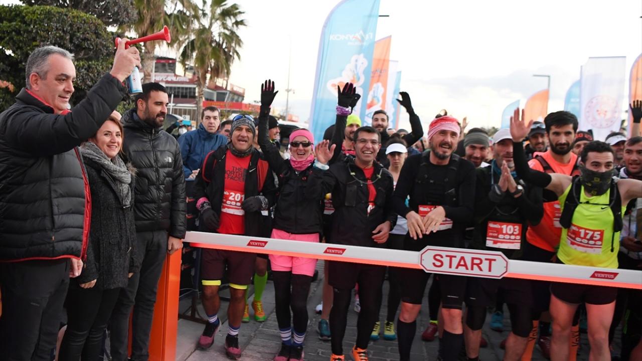 'Maviden beyaza' sloganıyla düzenlenen 54 kilometrelik Ultra Trail Maratonu, Antalya Konyaaltı da başladı. Deniz kenarında başlayan koşu, yarın karla kaplı Saklıkent Kayak Merkezi'nde sona erecek.