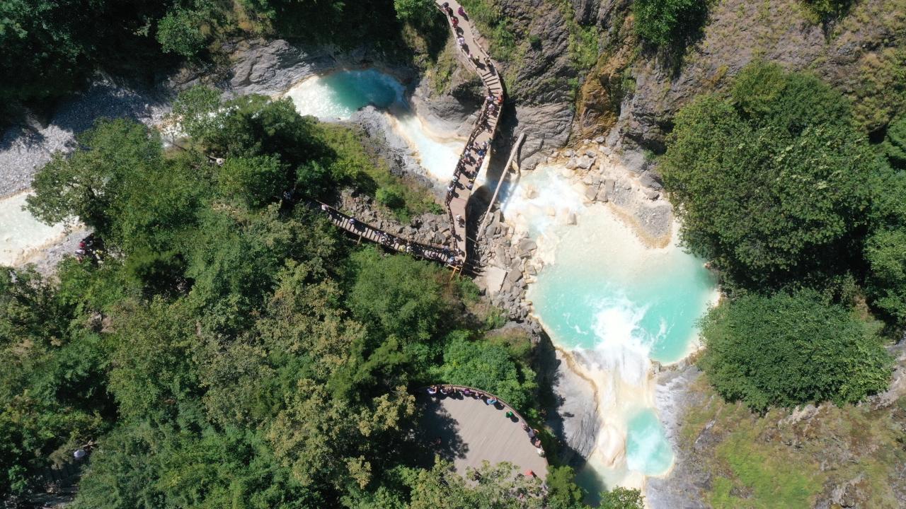 Buradaki güzelliğin kendisini etkilediğini belirten Engin, "Gerçekten geldiğimize değdi, turkuaz rengiyle çok güzel ve serin bir yer." dedi.
