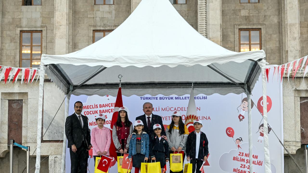 Meclis bahçesinde gerçekleştirilen etkinliğin açılışında, şehitler için saygı duruşunda bulunuldu ve İstiklal Marşı okundu. Meclis Başkanı Mustafa Şentop, sağanak nedeniyle kısa yaptığı konuşmasında, 23 Nisan Ulusal Egemenlik ve Çocuk Bayramı`nın, TBMM`nin açılışının 103. yıl dönümü olduğunu hatırlatarak çocukların bayramını tebrik etti. Başta Gazi Mustafa Kemal Atatürk olmak üzere o zamanın kahraman milletvekillerine ve bu zamana kadar görev yapan tüm milletvekillerine teşekkür eden Şentop, çocukları Meclis bahçesine alıştırmak için böyle bir program düzenlediklerini anlattı.