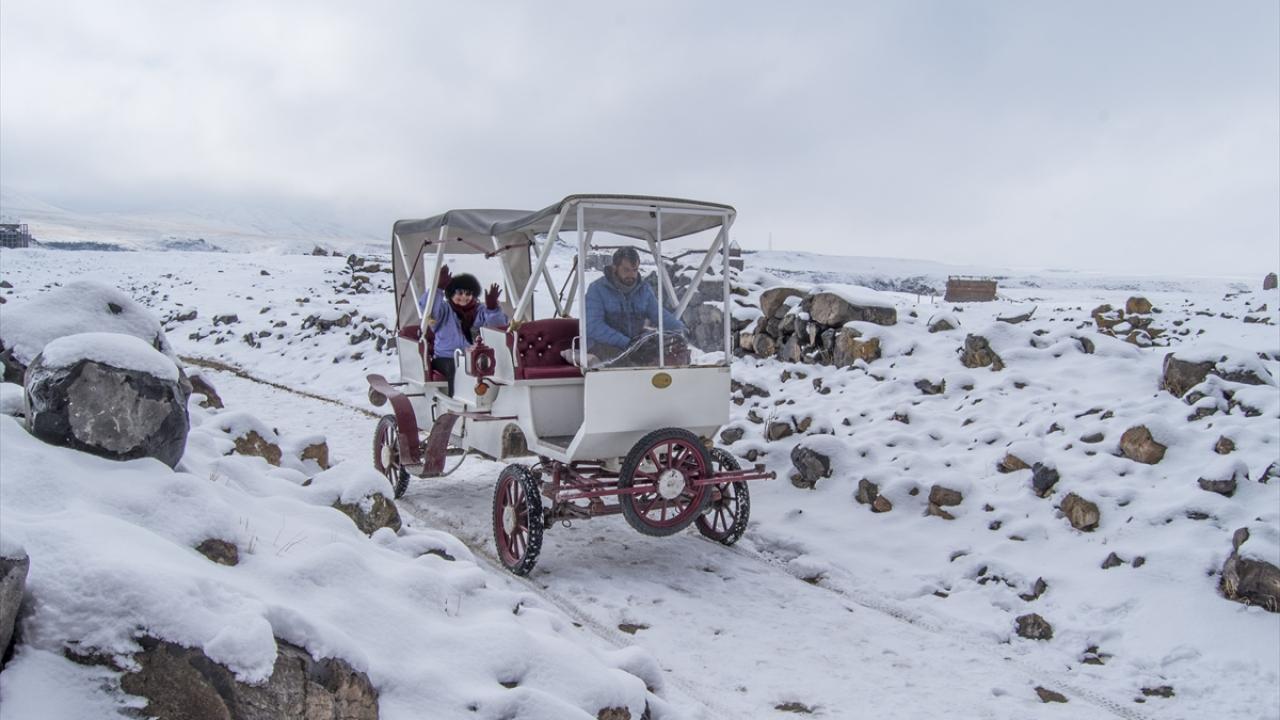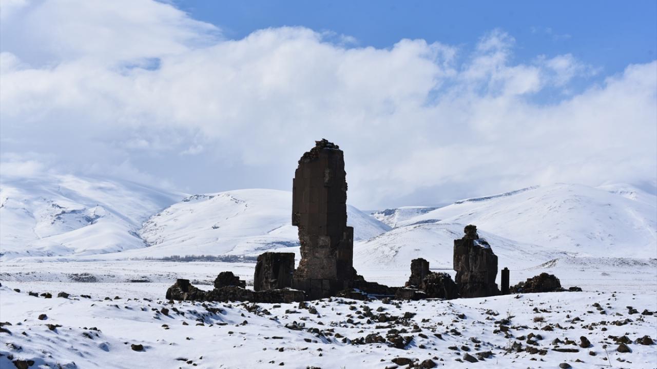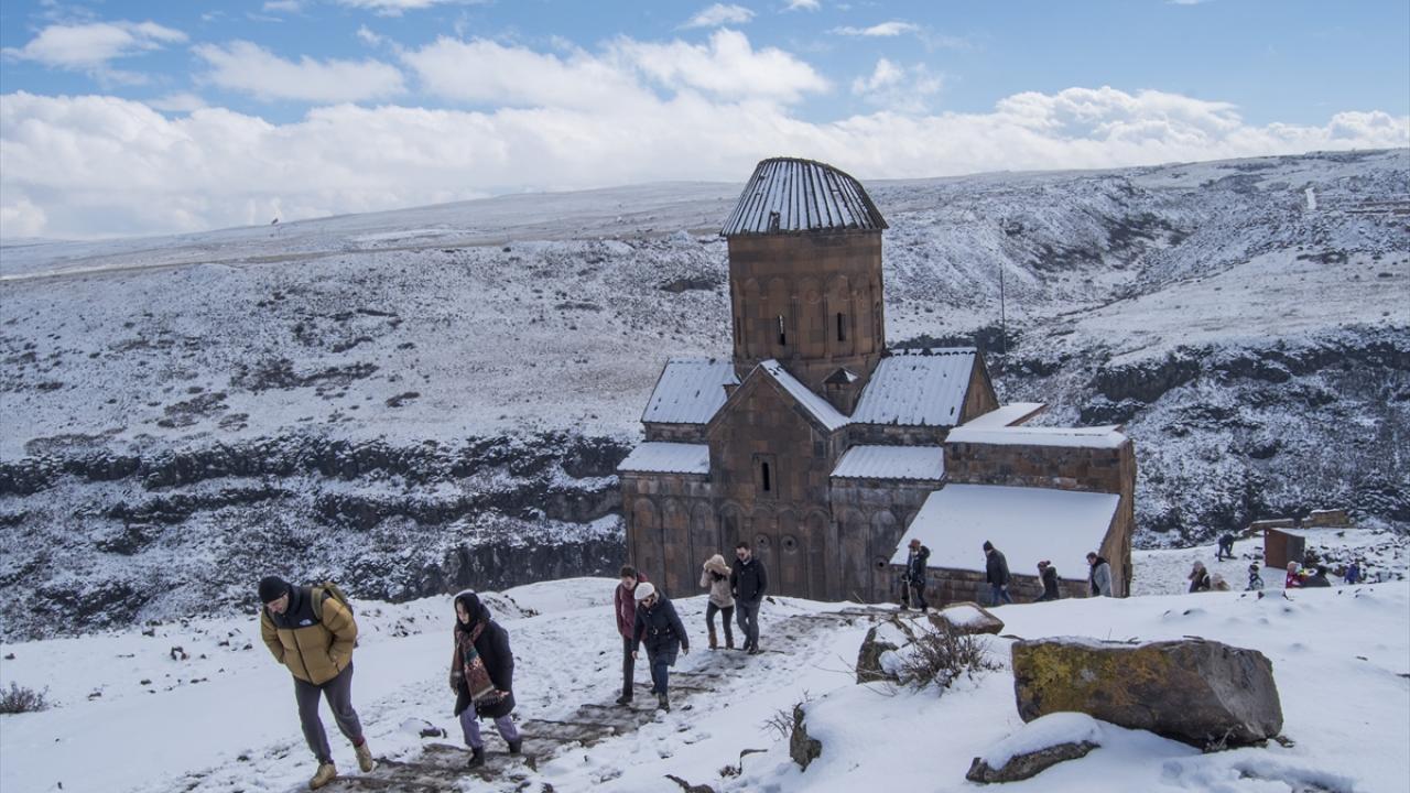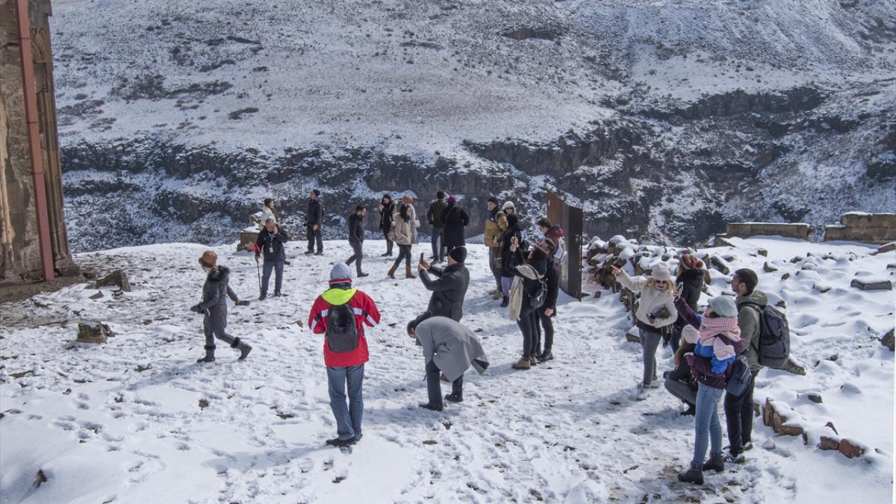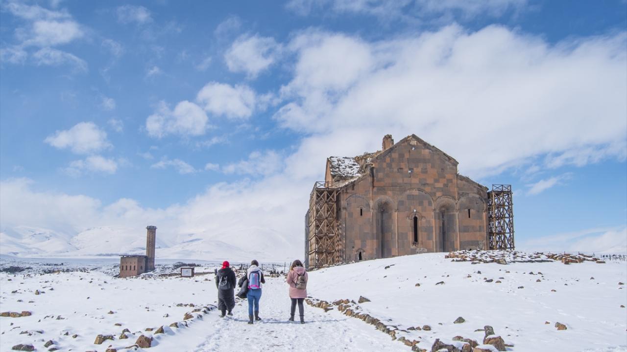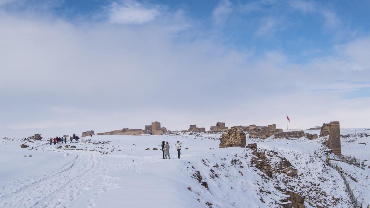 UNESCO Dünya Miras Listesi'nde yer alan ve yılın ilk 2 ayında 34 bin 500 kişinin ziyaret ettiği Kars'taki Ani Ören Yeri, ilkbaharda karla kaplı görüntüsüyle ziyaretçilerini ağırlıyor.