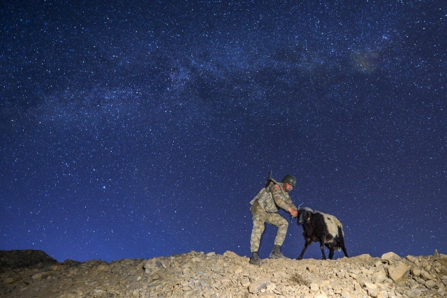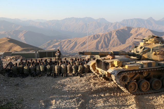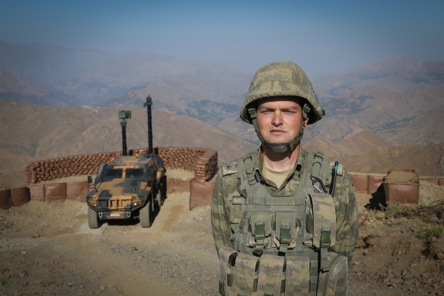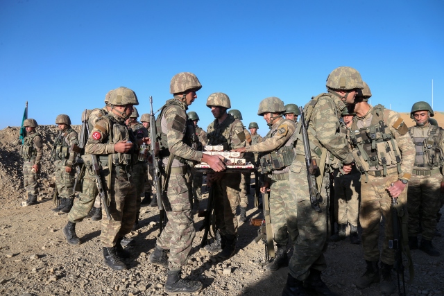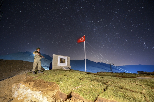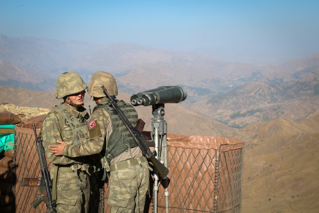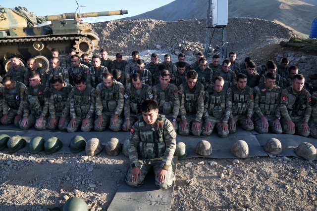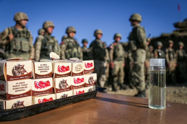 Hakkari'nin Şemdinli ilçesi kırsalında 2 bin 900 metre rakımlı tepede kurulan üs bölgesinde vatani görevini yapan Mehmetçik, günün ilk ışığıyla üs bölgesinin kurulması sırasında teröristlerin döşediği el yapımı patlayıcının infilak etmesi sonucu şehit olan Uzman Çavuş Mustafa Ünal için yaptırılan şehitlik önünde toplandı. Üs bölgesinde bayram namazı kılan Mehmetçik, vatanın birliği ve bütünlüğü için dua etti.