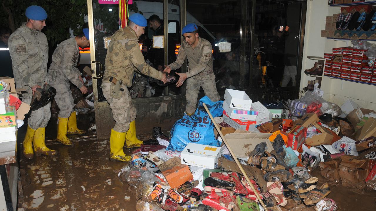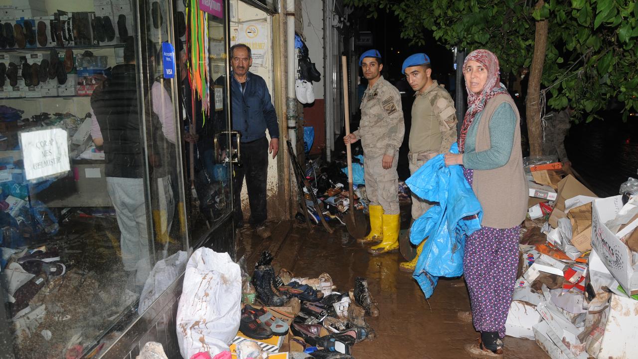 İl Jandarma Komutanlığında görevli askerler de selzedelerin imdadına koştu.