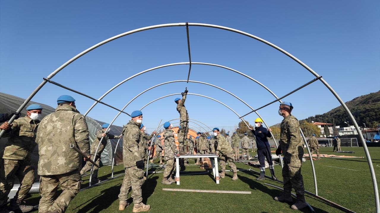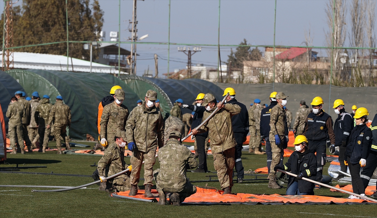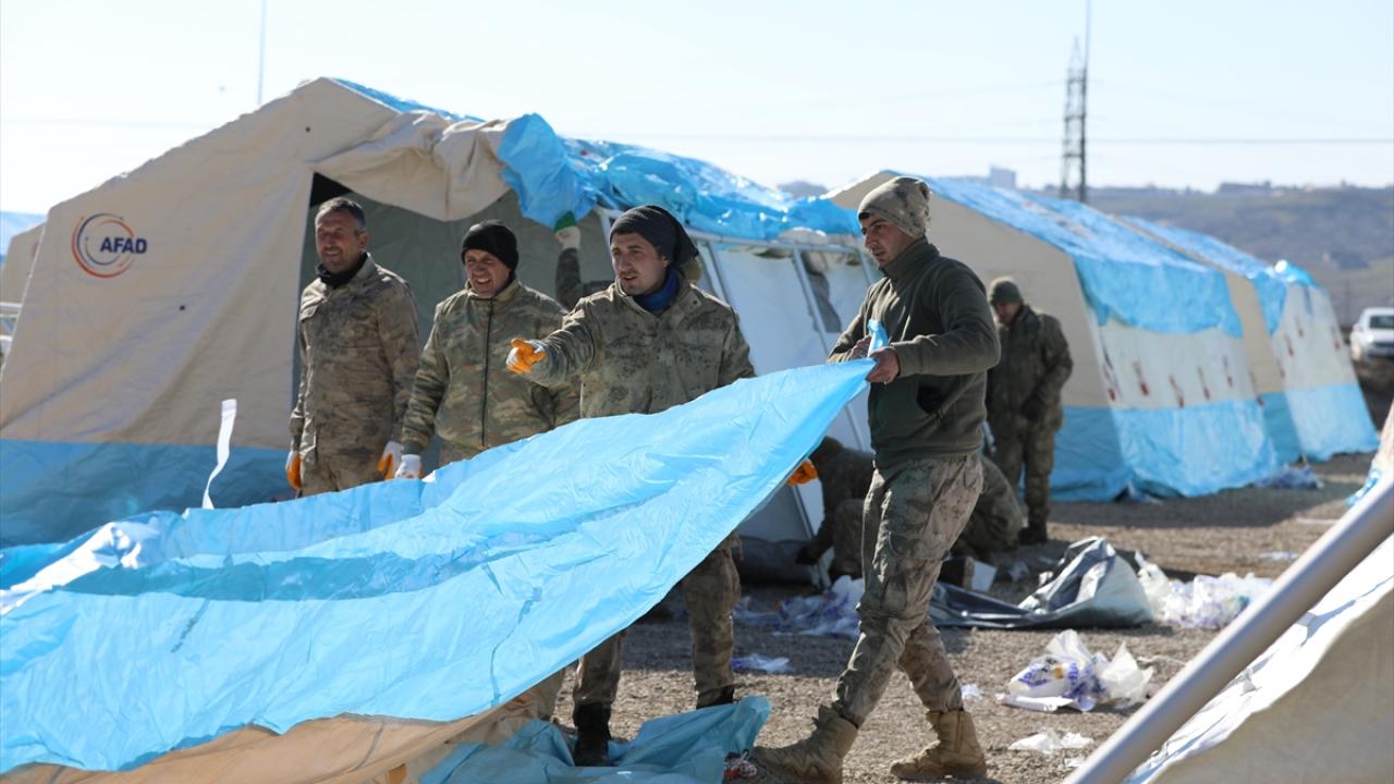 Kahramanmaraş merkezli depremlerden etkilenen illerde Mehmetçik, gece saatlerinde genel güvenliği sağlıyor, gündüz de arama kurtarma çalışmaları ile çadırların kurulmasından vatandaşlara yardım ulaştırılmasına kadar birçok alanda görev yapıyor. (Arşiv)