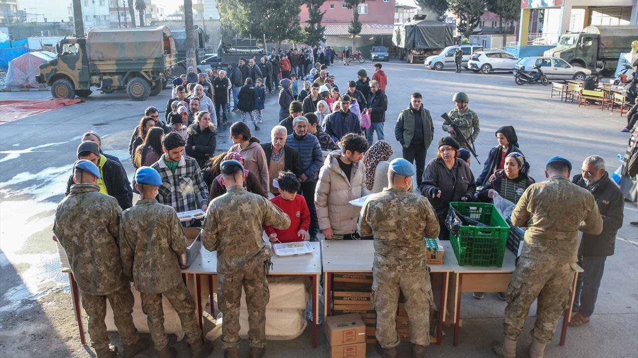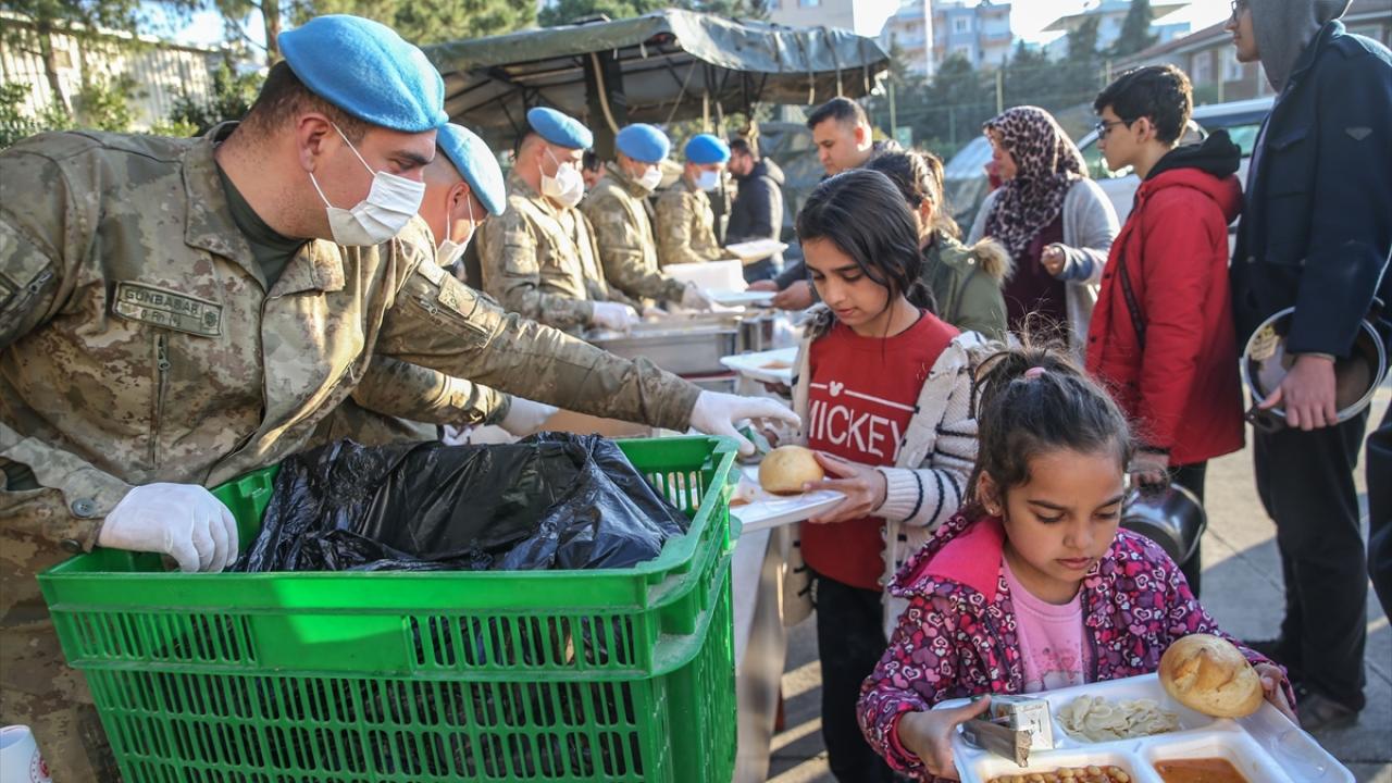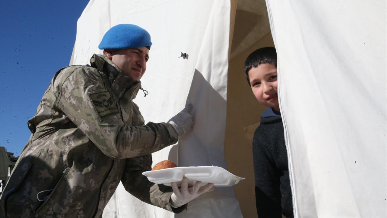 Mehmetçik, Kahramanmaraş merkezli depremlerden etkilenen Şanlıurfa`da kurulan çadır kentte, depremzedelere sıcak yemek ikramında bulunuyor. Denizli 11. Piyade Tugay Komutanlığı ve Şanlıurfa 20. Zırhlı Tugay Komutanlığınca, kentteki Turgut Özal Parkı Çadır Kenti`nde seyyar sahra mutfağı ve fırın kuruldu. Mehmetçik, gece gündüz çadır kentte depremzedelere sıcak yemek ikram ediyor. (Arşiv)