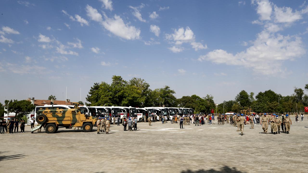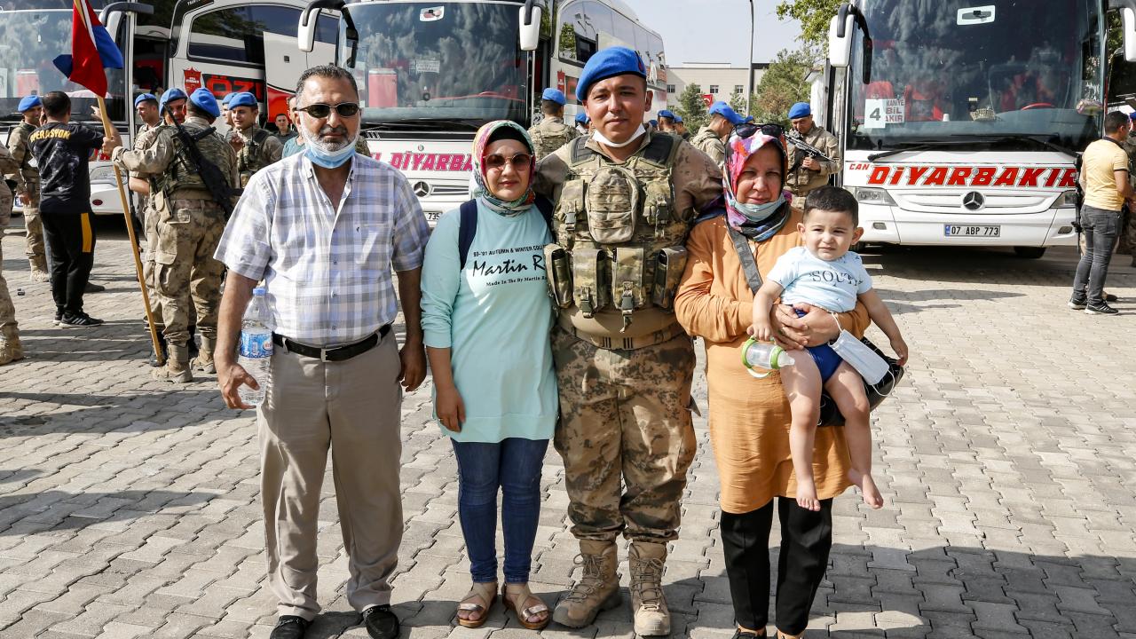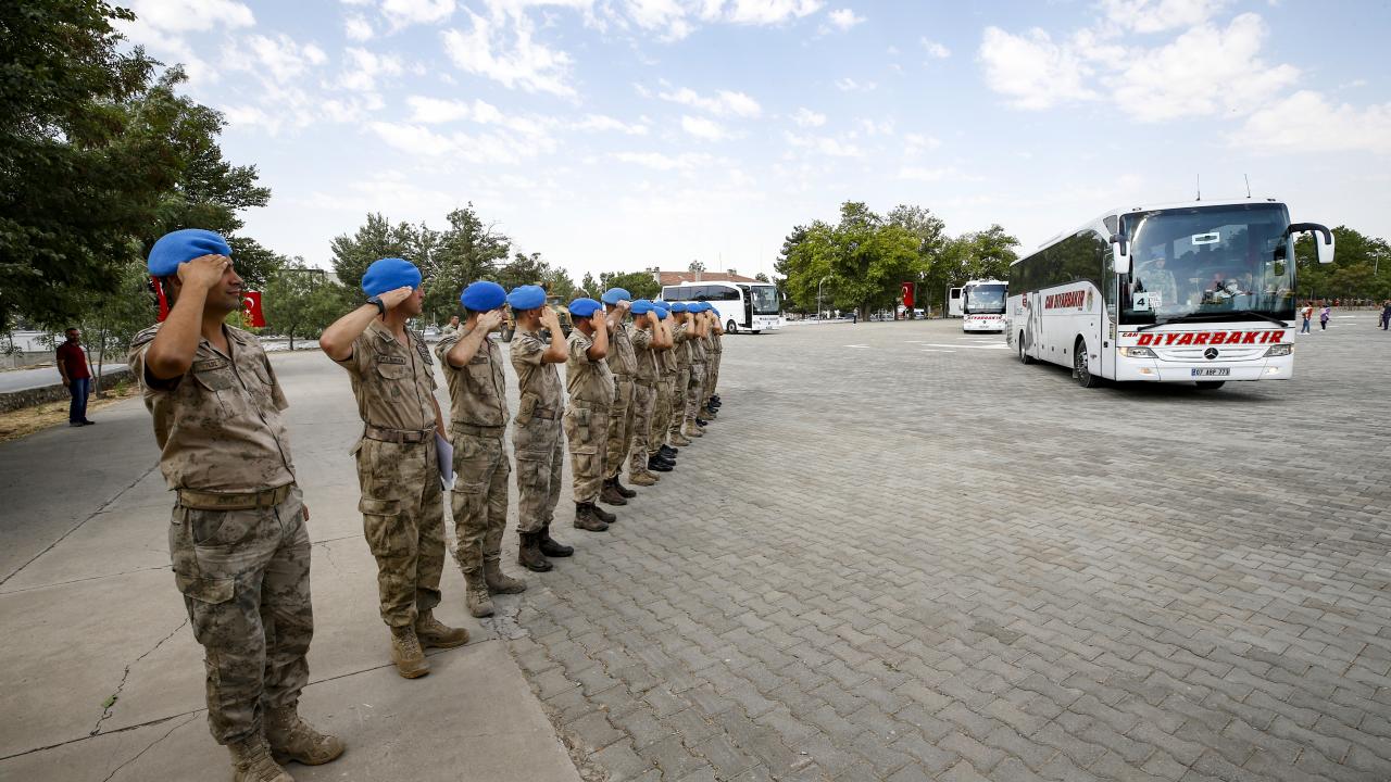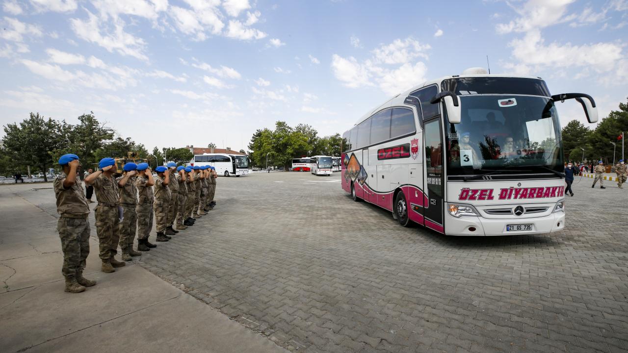 Türk Silahlı Kuvvetlerinin (TSK) sınır ötesi operasyonlarına katılmak üzere Diyarbakır'dan 256 asker, dualarla Barış Pınarı Harekatı ile terörden temizlenen Suriye'nin Rasulayn ilçesine uğurlandı.