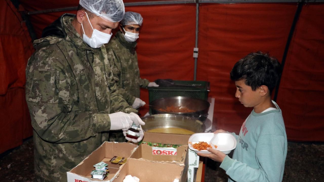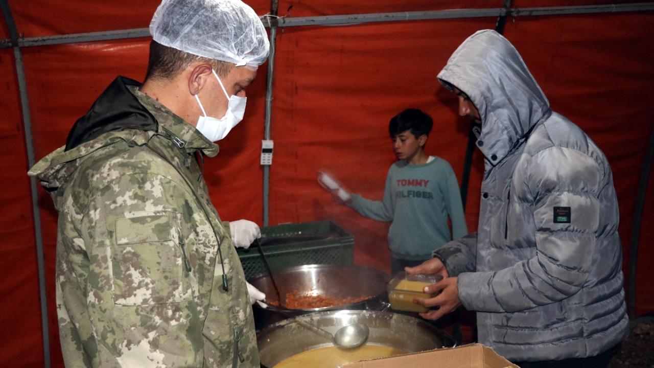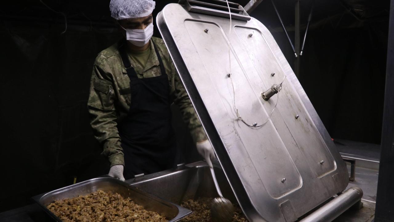 Mehmetçik, ayrıca ramazan ayının başlamasıyla sahra mutfağında depremzedelere sahur ve iftar için yemek hazırlıyor.