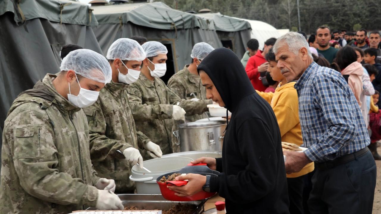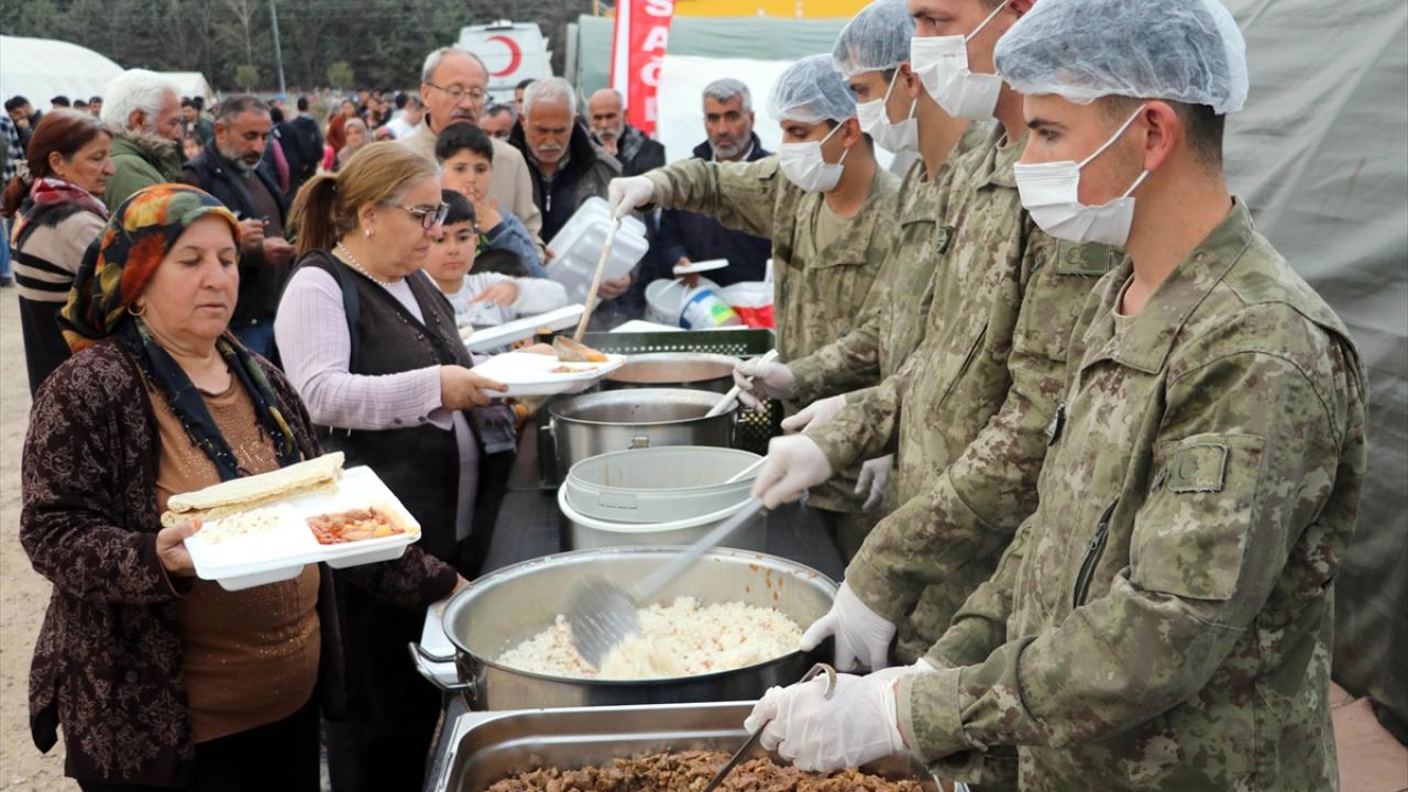 Çadır kentte barınma alanları oluşturan Mehmetçik, ayrıca TSK okulu, sahra mutfağı, ekmek fırını, banyo gibi sosyal donatılarla depremzedelerin günlük yaşamını sürdürmesine yardım ediyor