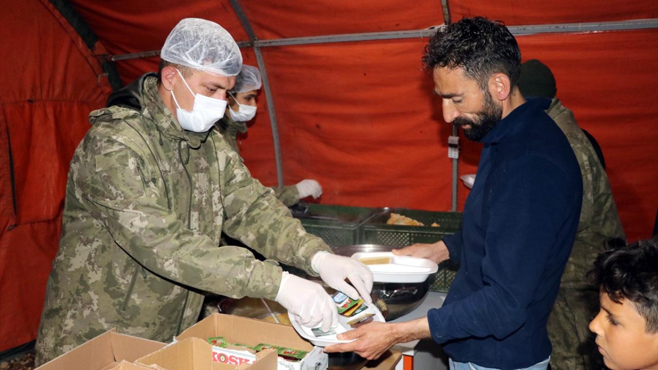 Mehmetçik ile depremzedeler sahur ve iftar sofrasını paylaşıyor