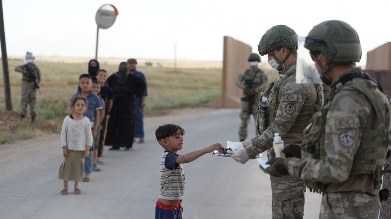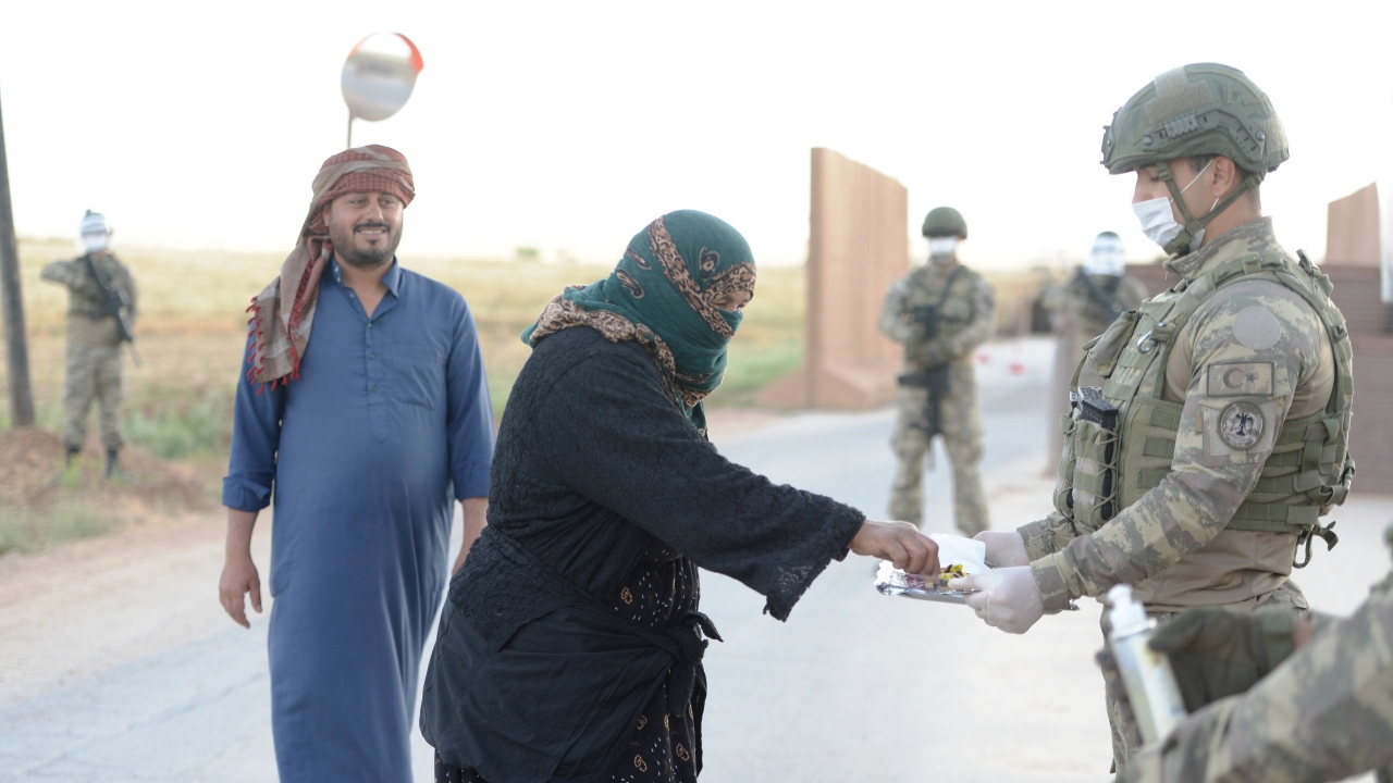 Suriye'de terörden arındırılan Barış Pınarı bölgesindeki yol kontrol noktasında görev alan Mehmetçik, Suriyelilerin bayramını kutladı. Savaş mağduru insanlara yönelik gerçekleştirdiği insani yardımlarla dünyaya örnek davranışlar sergileyen Türk ordusu, Ramazan Bayramı'nı terör örgütlerinin işgalinden kurtardığı bölgedeki 34. yol kontrol noktasında geçiriyor.