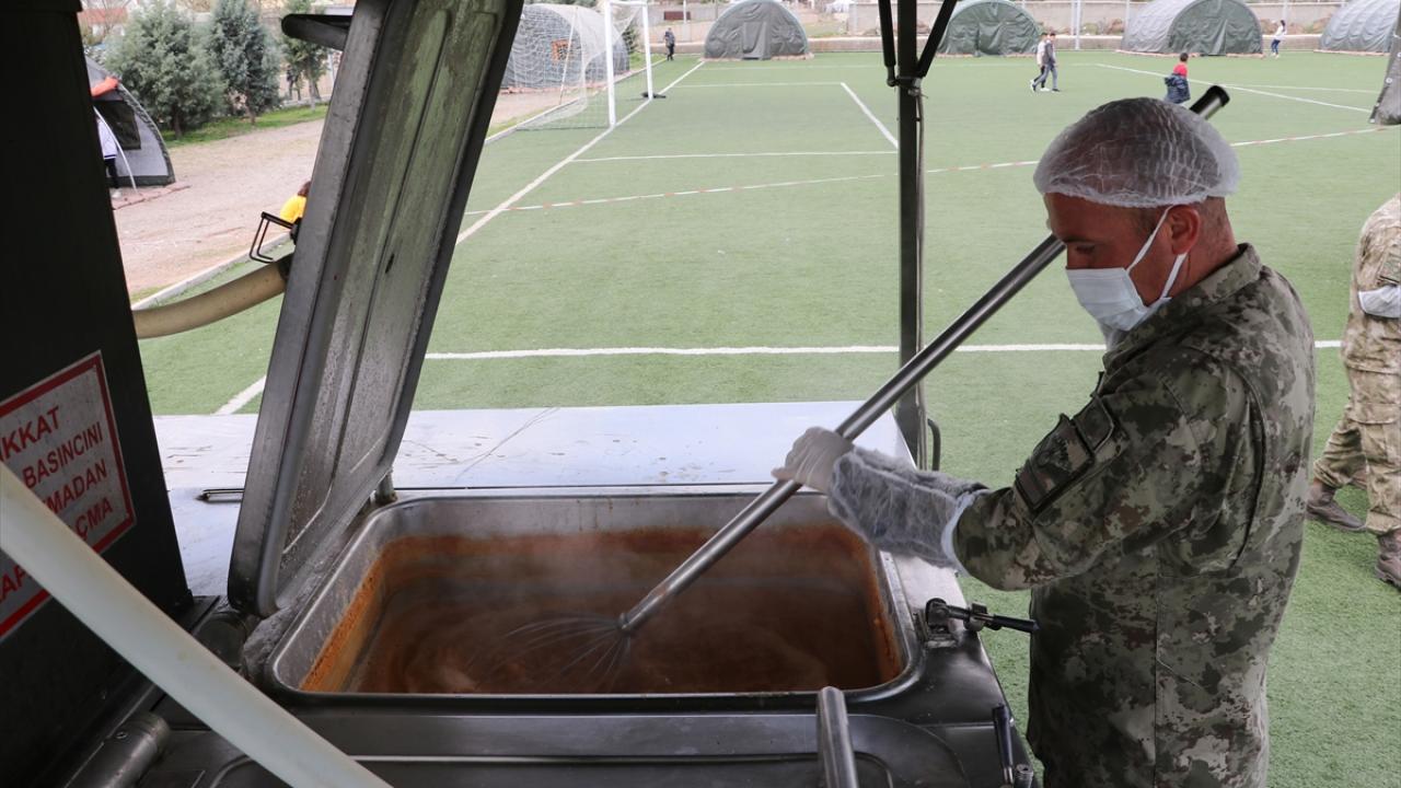 Günün 24 saati açık olan ihtiyaç alanlarında 19 asker, binlerce depremzedenin ihtiyaçlarını karşılıyor. Yemekhanede günlük 4 bin depremzedeye kahvaltı ile iki öğün sıcak yemek hazırlanıyor.