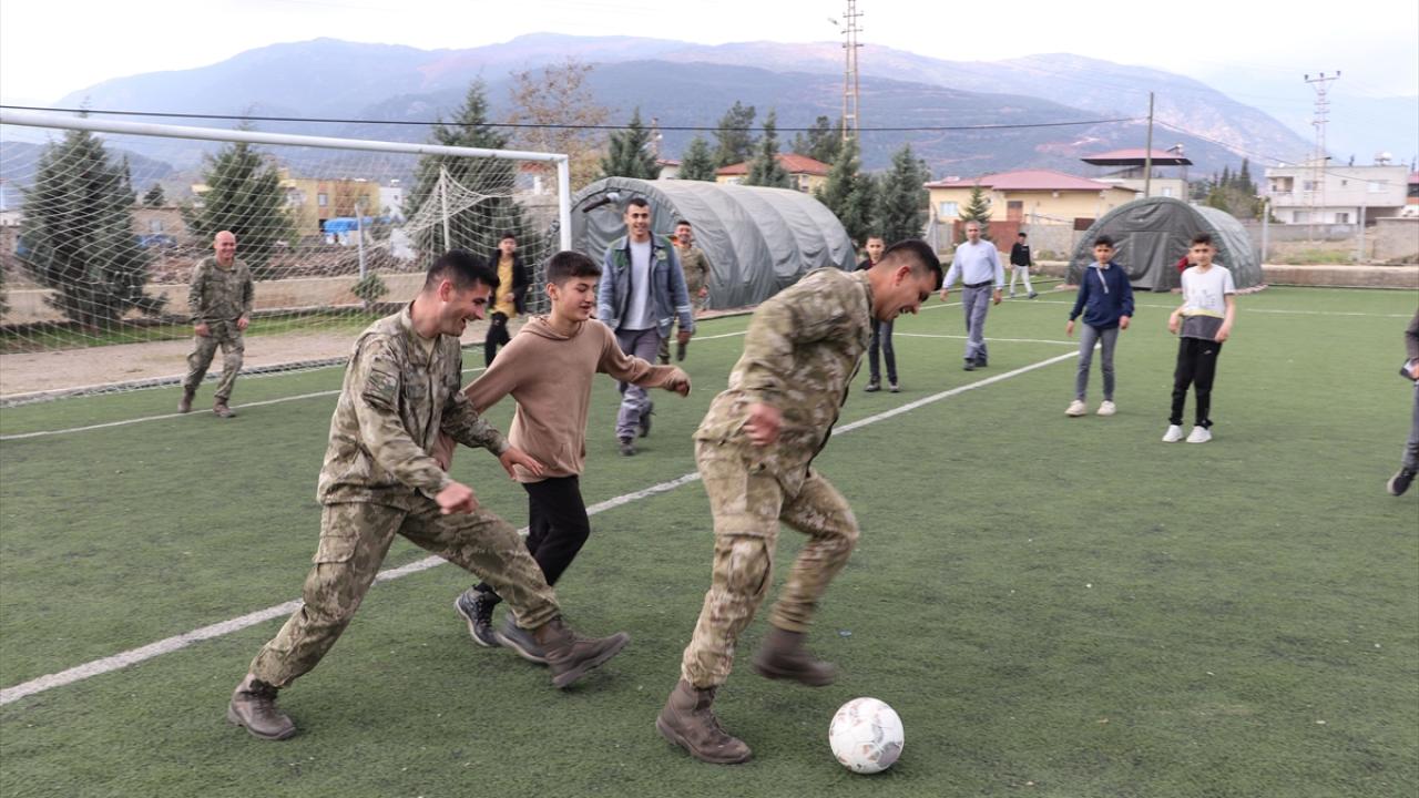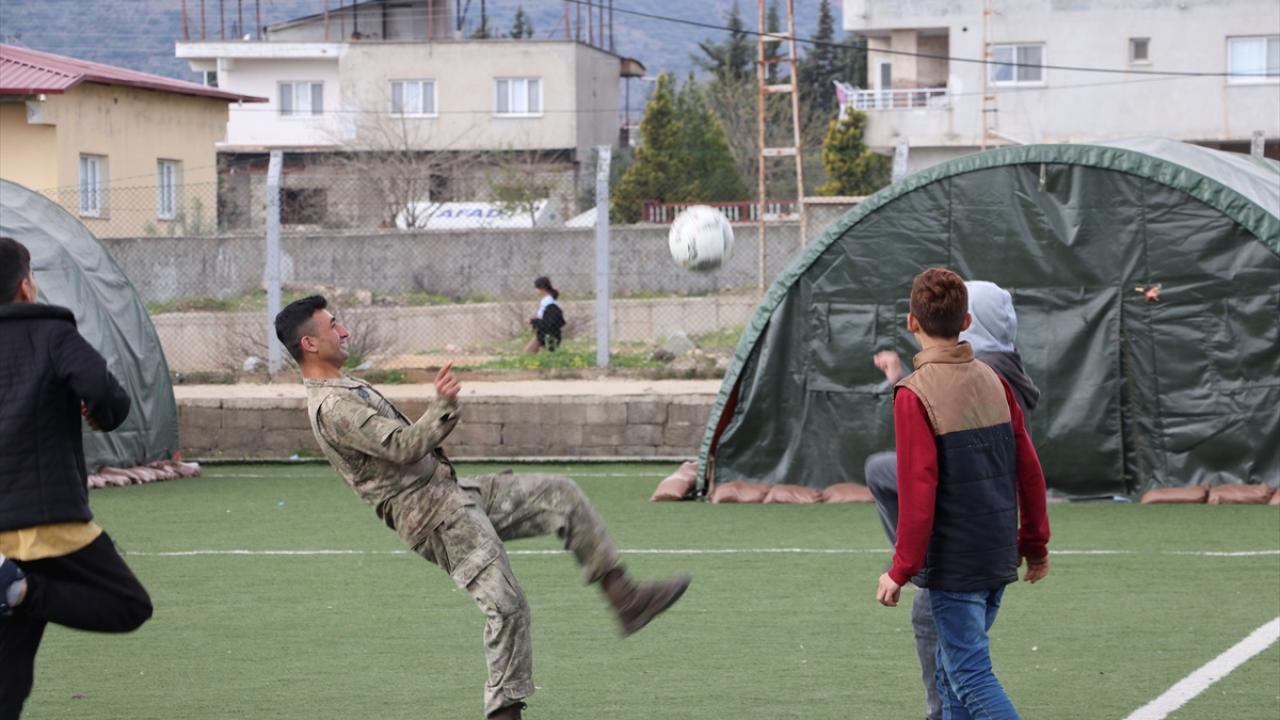 Askerler, zaman zaman çeşitli oyunlar oynadıkları çocukların eğlenceli vakit geçirmesini sağlıyor.
