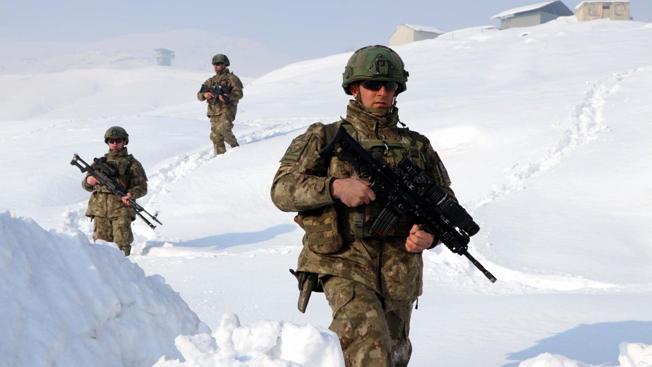 Yüksekova`da bulunan 3`üncü Piyade Tümen Komutanlığı sorumluluk bölgesinde, kar kalınlığının yer yer 1,5 metreyi bulduğu arazi koşullarında görev yapan Mehmetçik de yeni kamuflajlarını giymeye başladı.