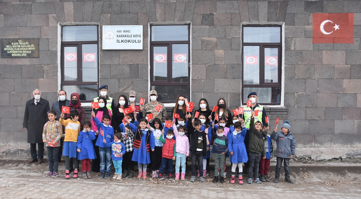 Kars'ta Jandarma Komutanlığı ekipleri, 2 bin 300 rakımdaki köyde görev yapan öğretmenlere sürpriz ziyarette bulunarak, 24 Kasım Öğretmenler Günü'nü kutladı.