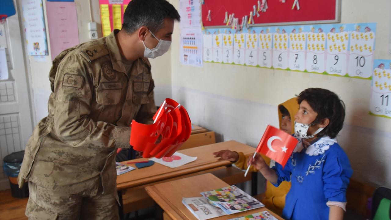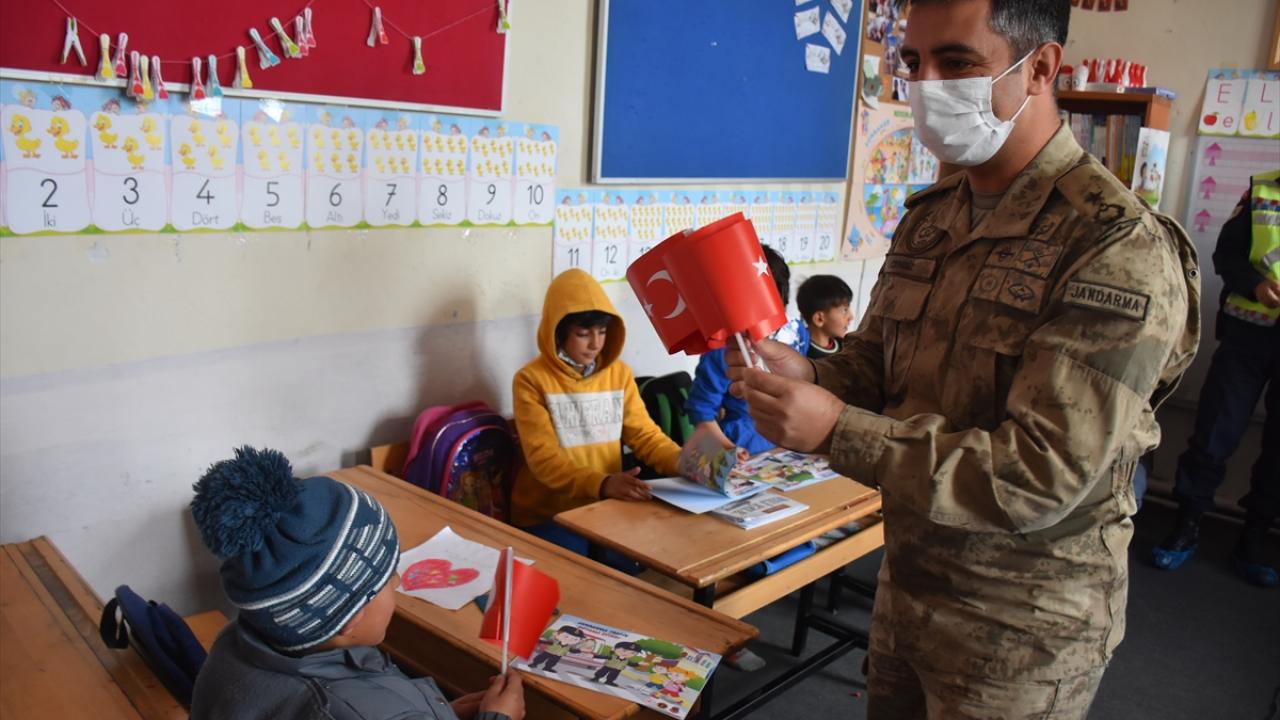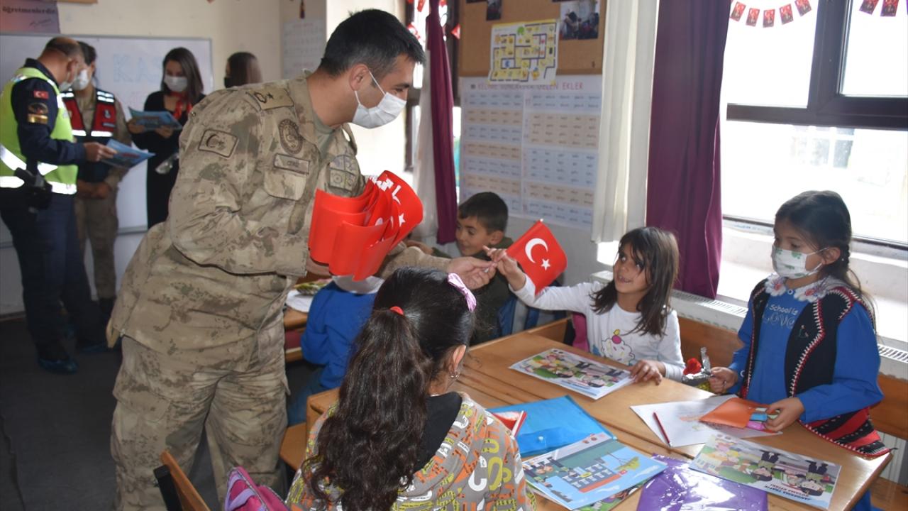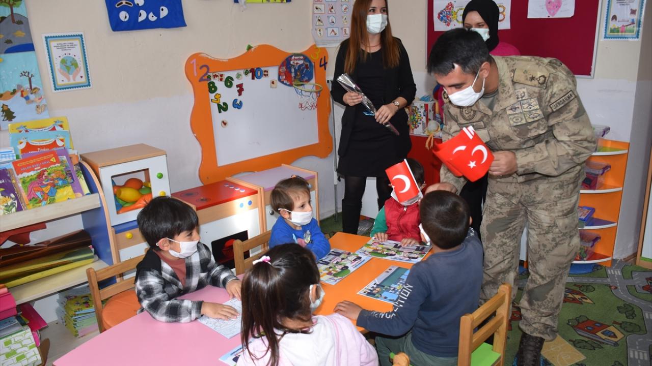 Sonrasında öğrencilere boyama kitabı ve Türk bayrağı hediye eden askerler, hatıra fotoğrafı çektirdi.