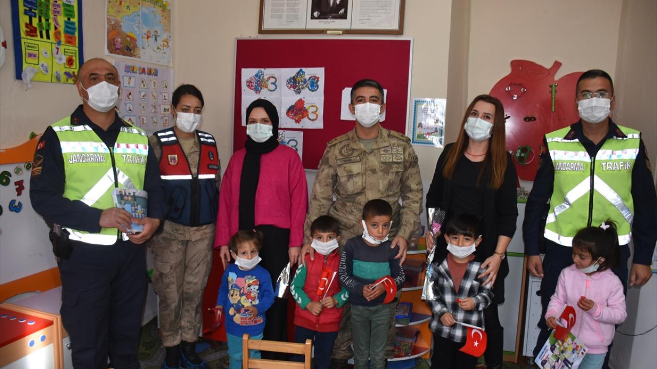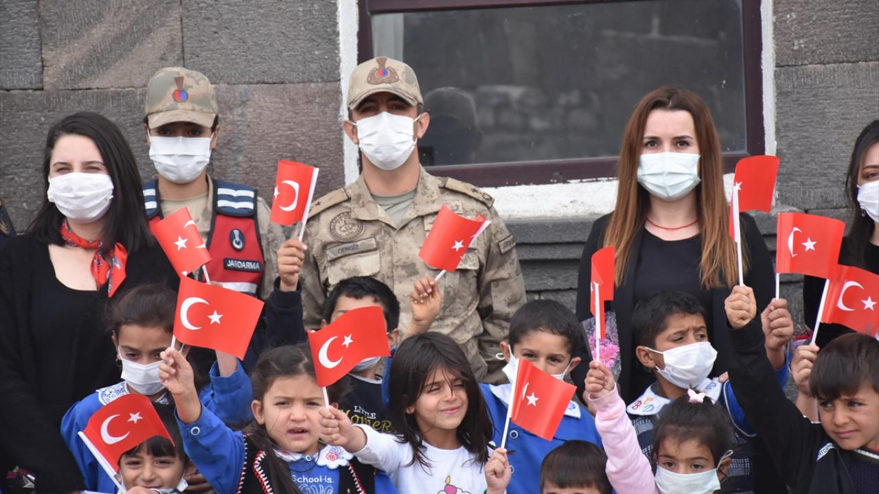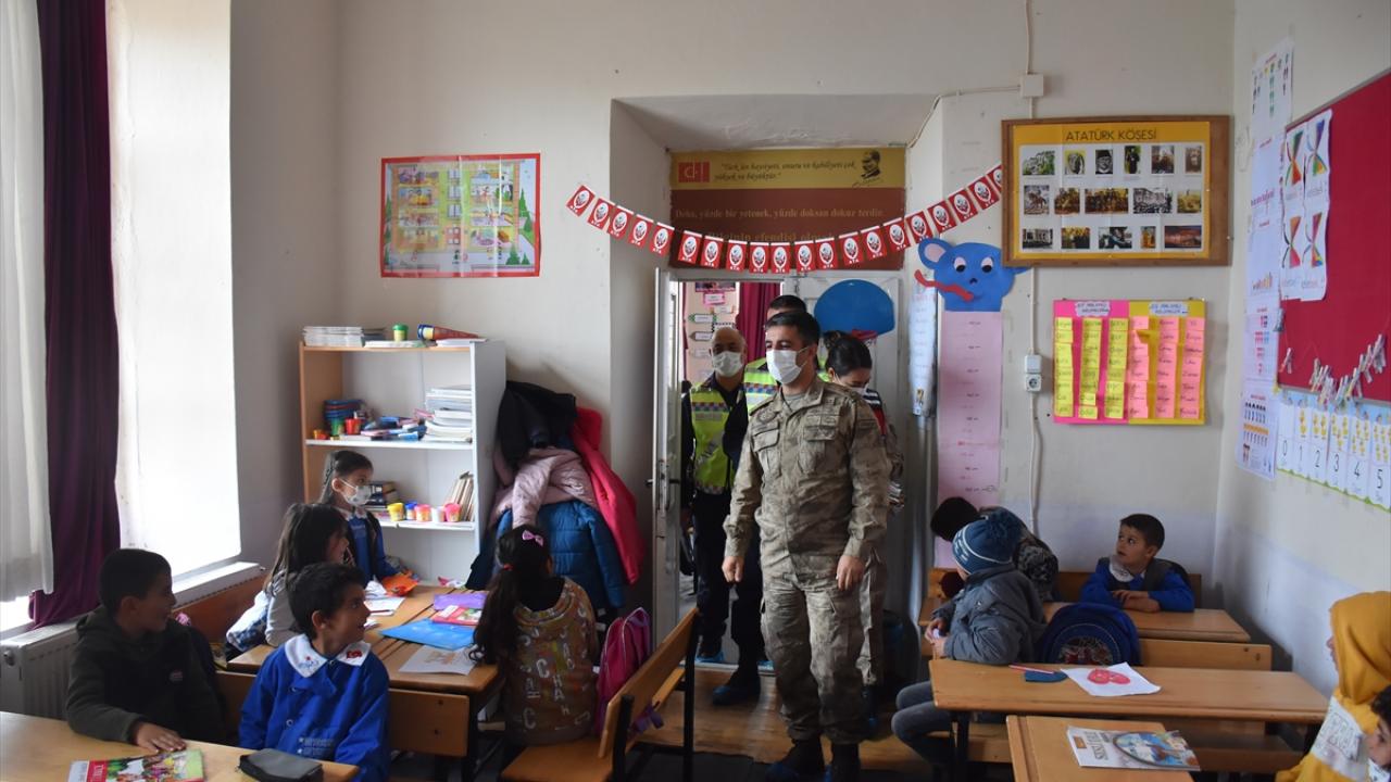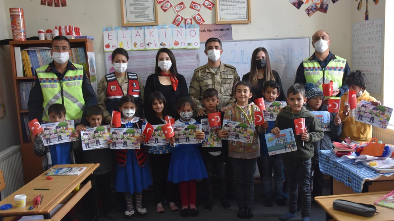 Sonrasında öğrencilere boyama kitabı ve Türk bayrağı hediye eden askerler, hatıra fotoğrafı çektirdi.