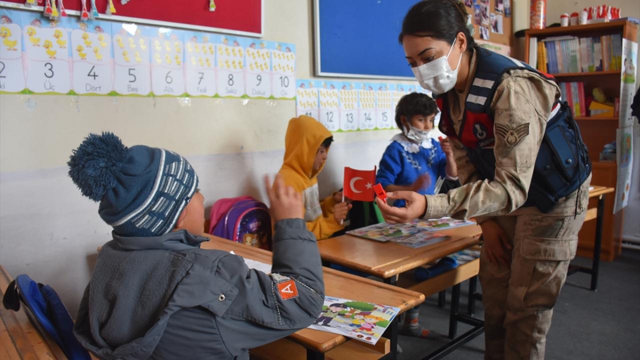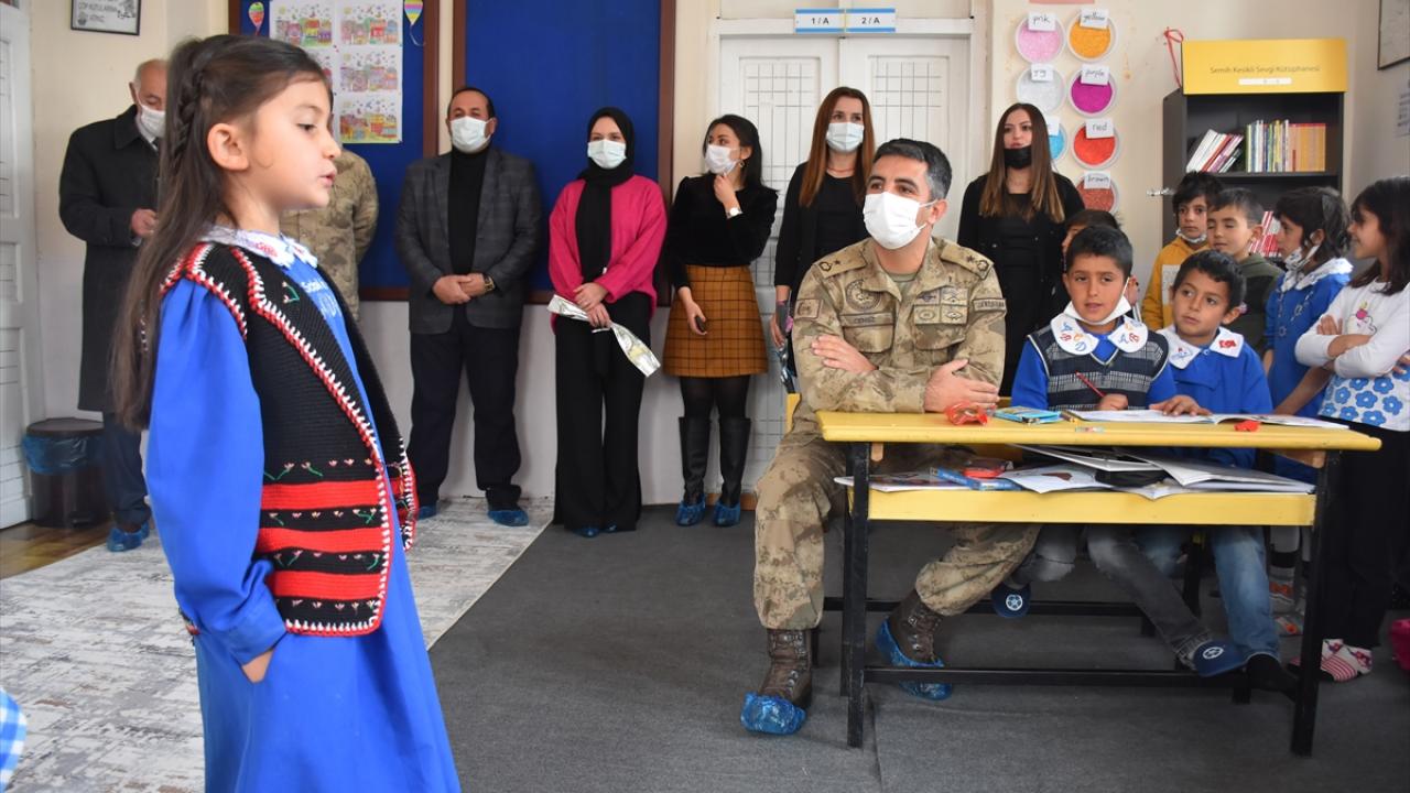 2. sınıf öğrencilerinden Eylül Kesikkol, jandarma ekiplerine teşekkür ederek, İstiklal Marşı`nın 5 kıtasını okudu.