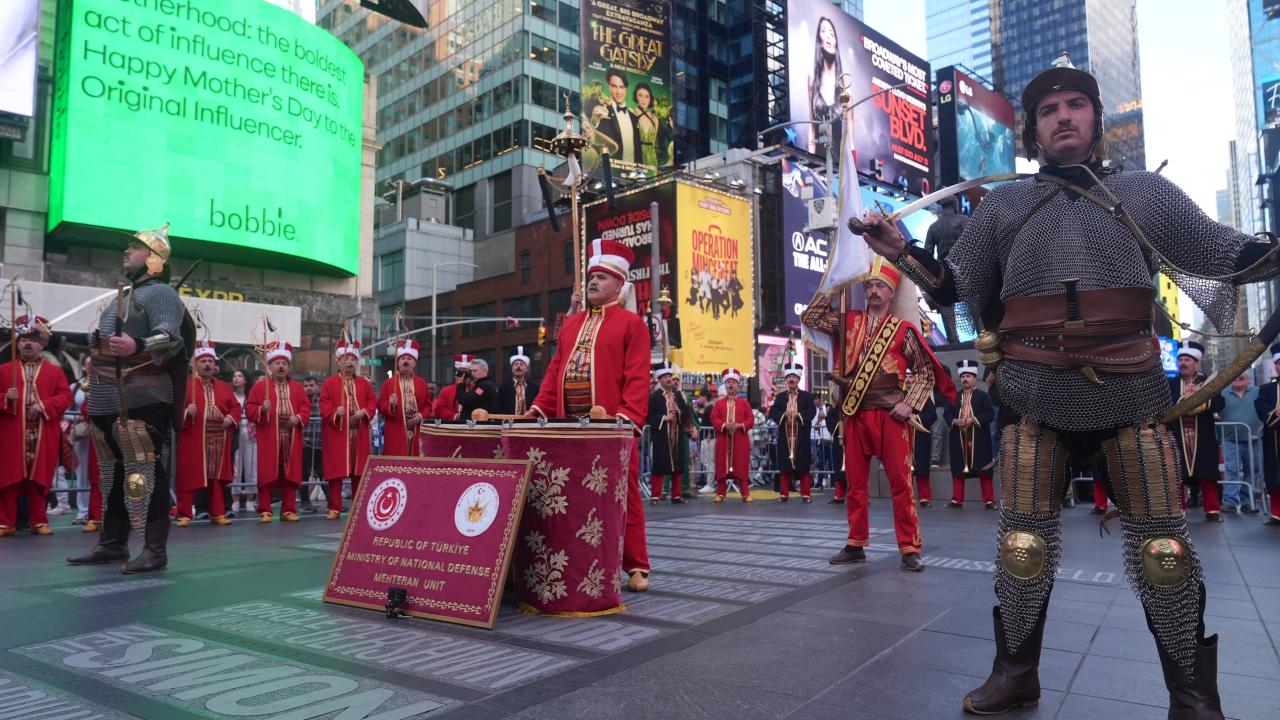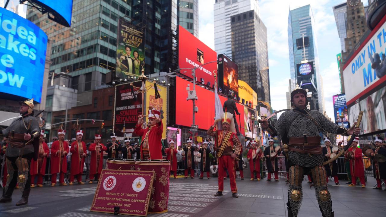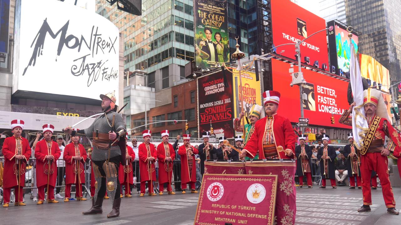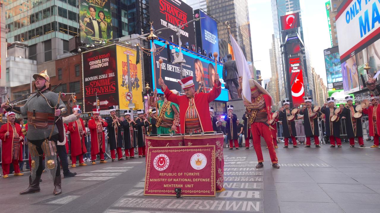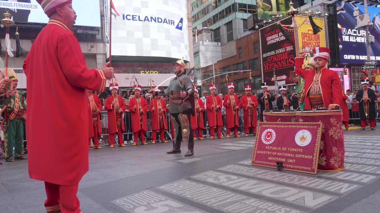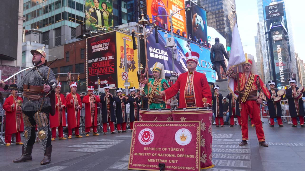 İletişim Başkanlığı koordinasyonunda, 16-17 Mayıs'ta ABD'nin New York kentinde Türk Günü Yürüyüşü ve çeşitli kültürel etkinliklerde gösteri yapan Milli Savunma Bakanlığı'na bağlı Mehteran Birliği, 18 Mayıs Pazar günü Times Meydanı'nda da bir performans sergiledi.