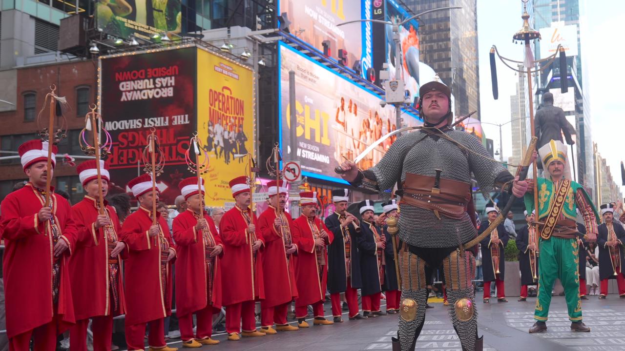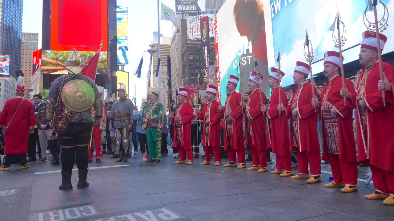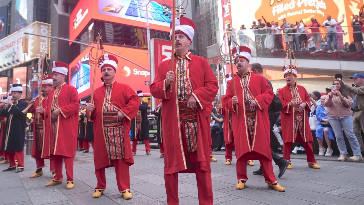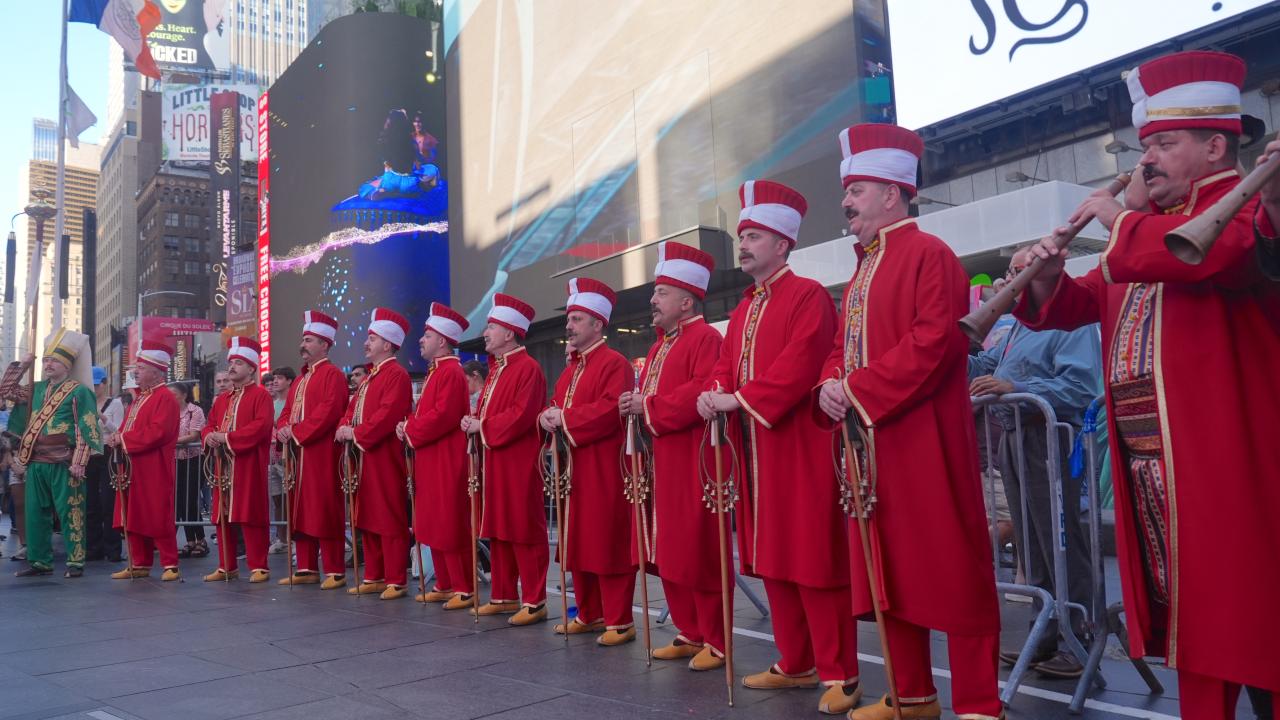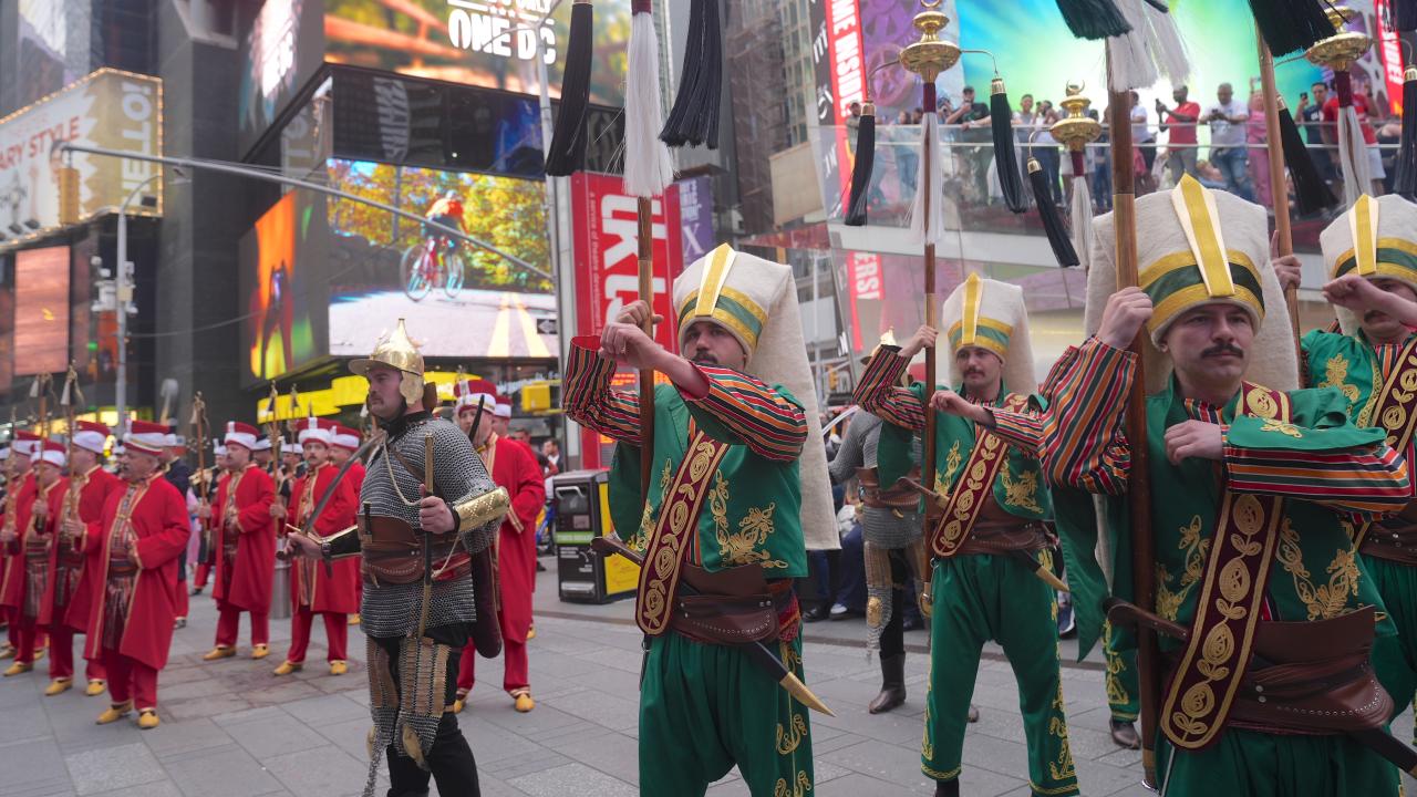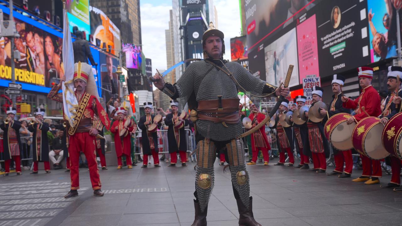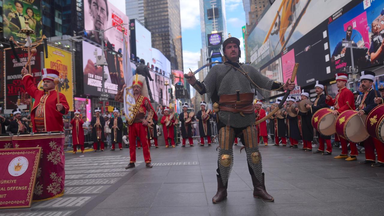 İletişim Başkanlığı koordinasyonunda, 16-17 Mayıs'ta ABD'nin New York kentinde Türk Günü Yürüyüşü ve çeşitli kültürel etkinliklerde gösteri yapan Milli Savunma Bakanlığı'na bağlı Mehteran Birliği, 18 Mayıs Pazar günü Times Meydanı'nda da bir performans sergiledi.