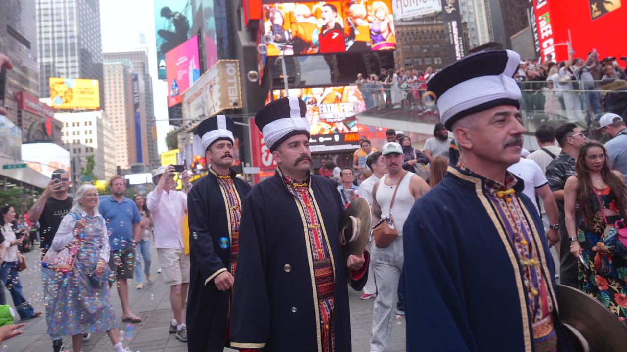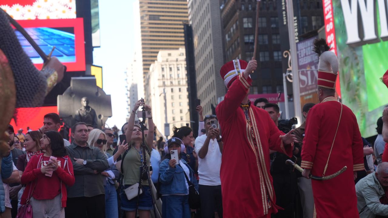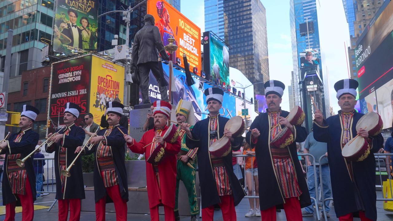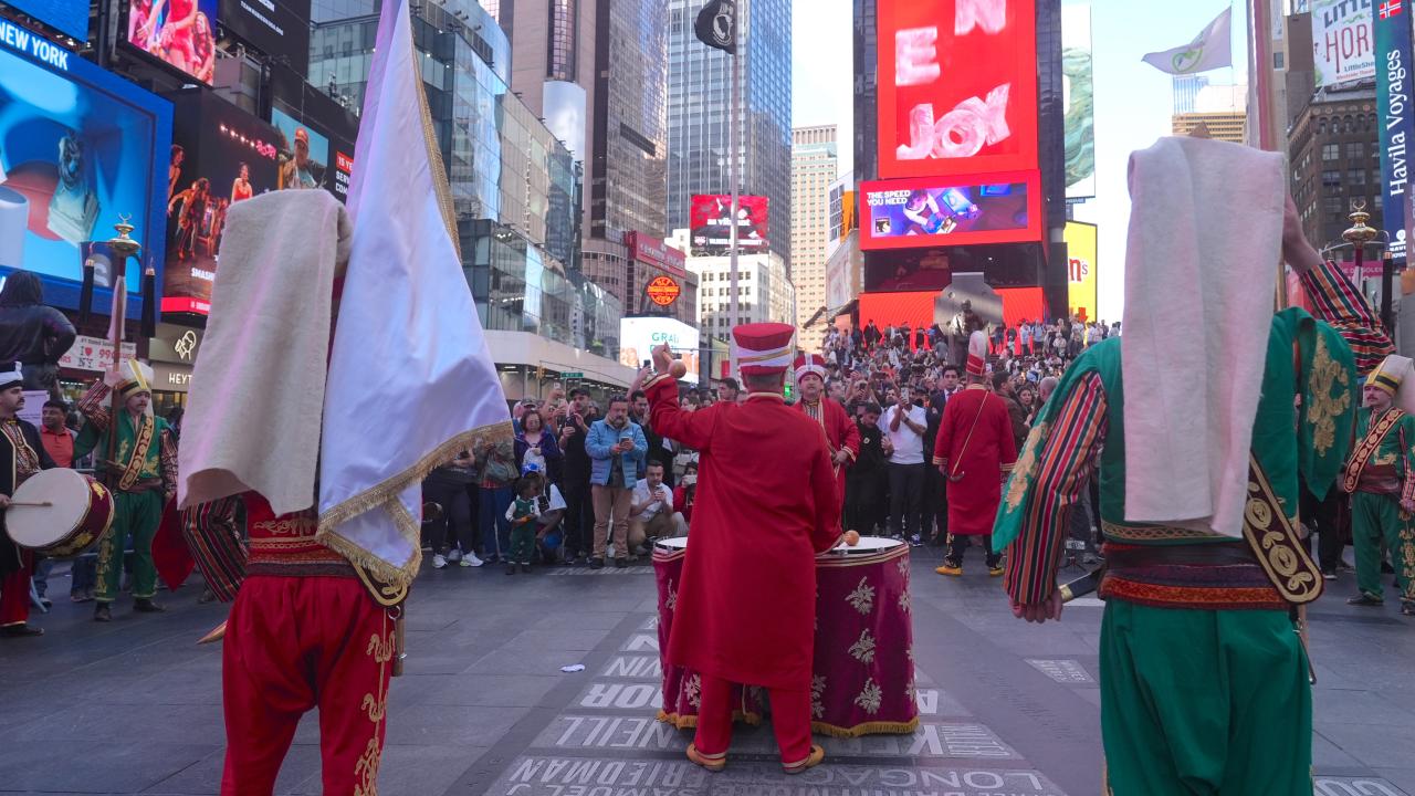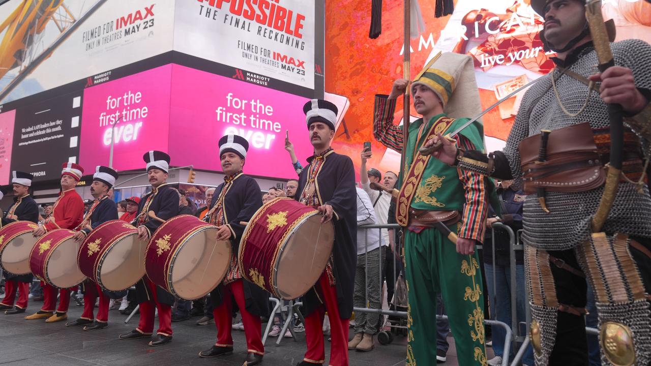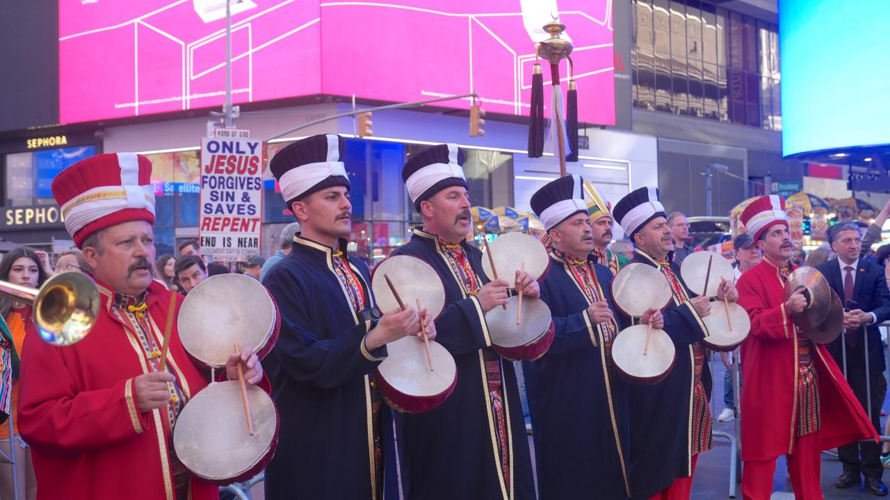 İletişim Başkanlığı koordinasyonunda, 16-17 Mayıs'ta ABD'nin New York kentinde Türk Günü Yürüyüşü ve çeşitli kültürel etkinliklerde gösteri yapan Milli Savunma Bakanlığı'na bağlı Mehteran Birliği, 18 Mayıs Pazar günü Times Meydanı'nda da bir performans sergiledi.
