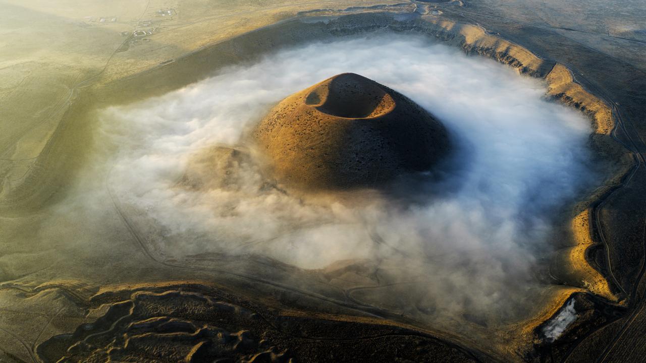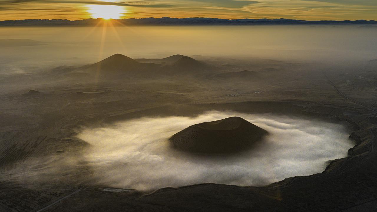 Konya’nın Karapınar ilçesinde bulunan Meke Gölü, sabah saatlerinde etkili olan sisle birlikte güzel görüntülere sahne oldu.