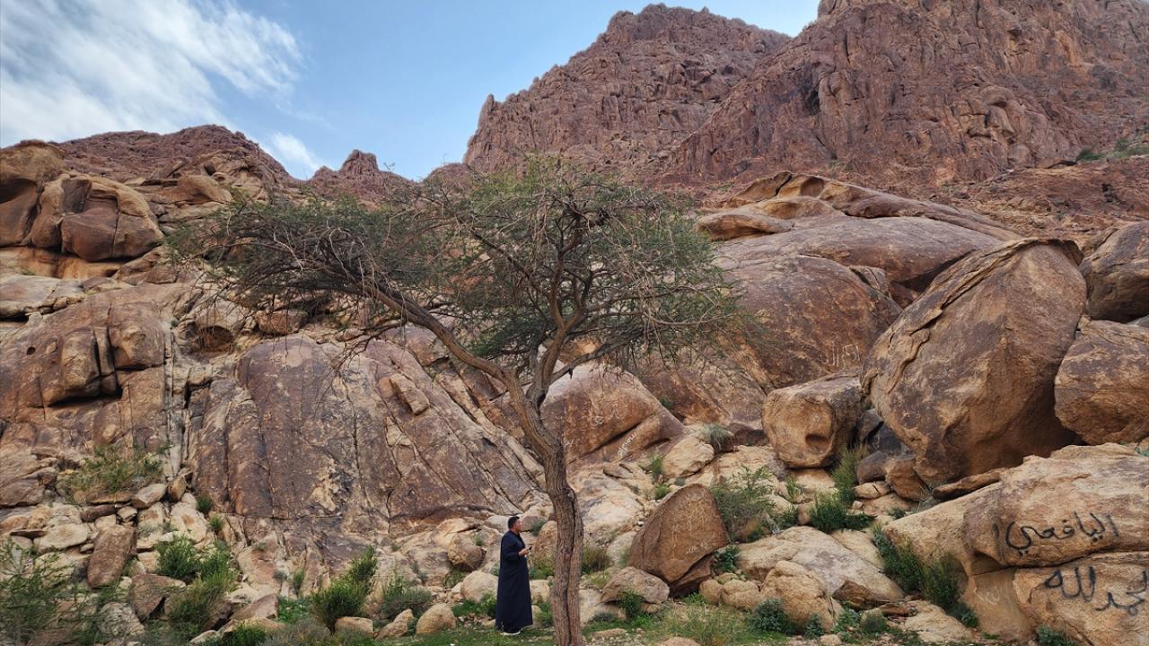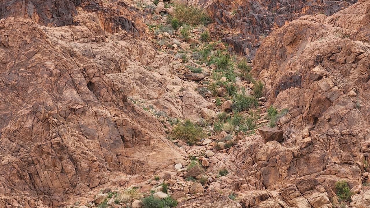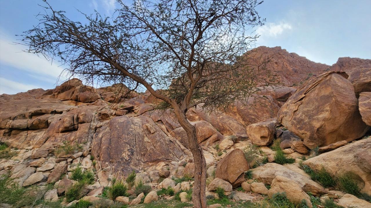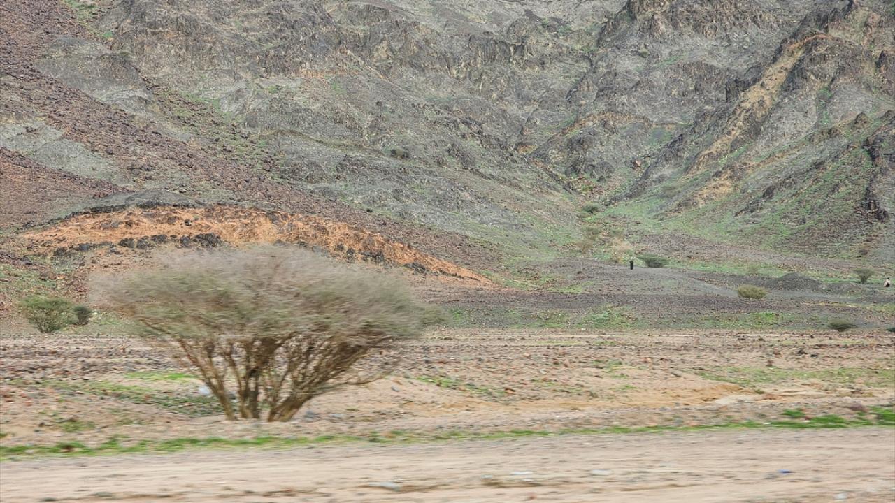 Görüntüde birkaç gündür şiddetli yağışların etkisi altındaki Mekke`nin dağ ve ovalarında yeşilin hakim olduğu gözlendi.
