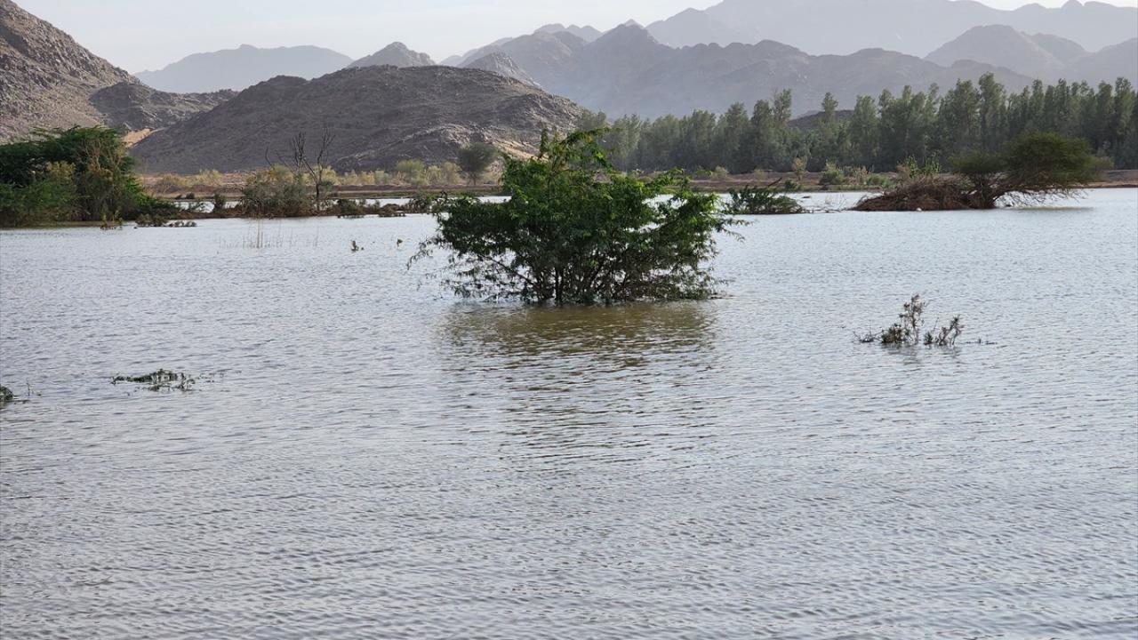 Suudi Arabistan`da şiddetli yağışların ardından Medine kentinin kuzeyindeki el Beyda vadisindeki göl ve göletlerin su seviyesi yükseldi.