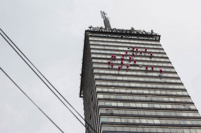 Meksika'nın başkenti Meksiko'da akrobatlar Latin Amerika Kulesi'ne çıkarak Meksika'nın İspanyolca kısaltması "CDMX" harflerini oluşturdu.