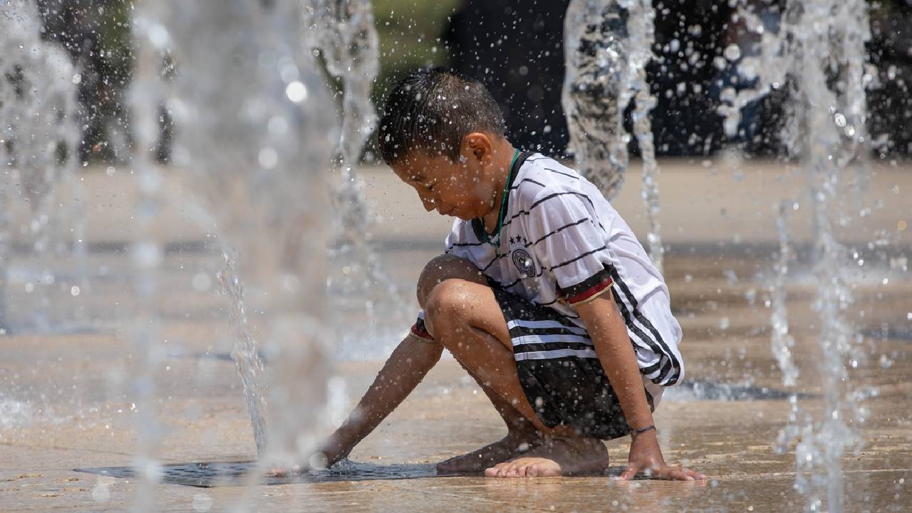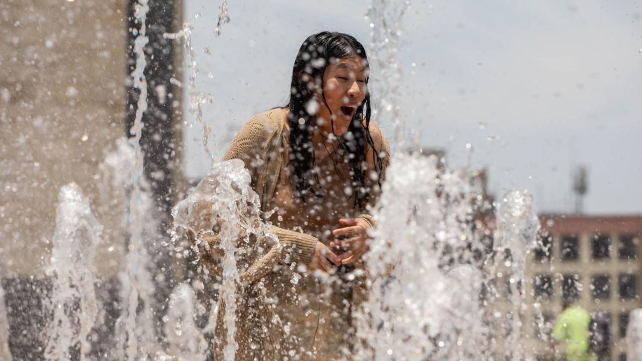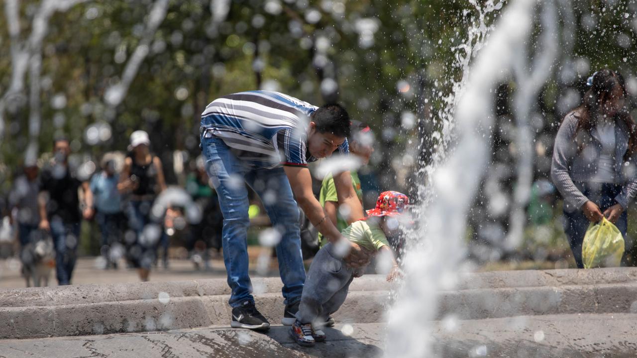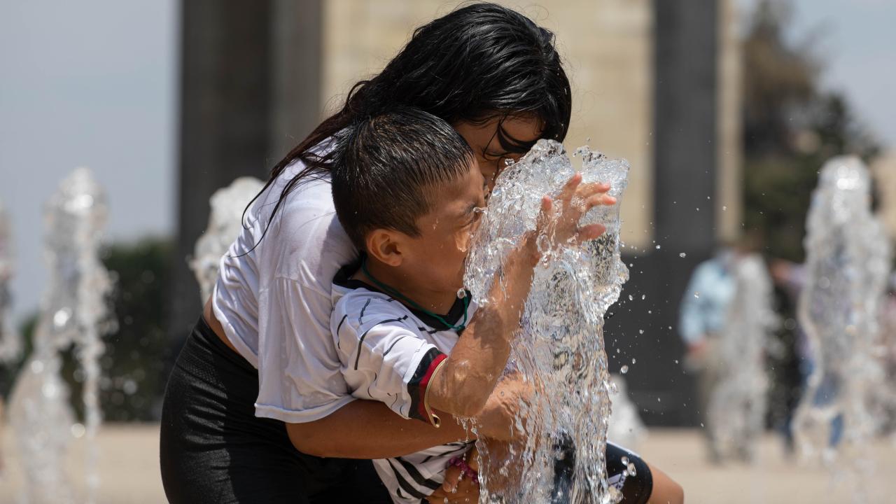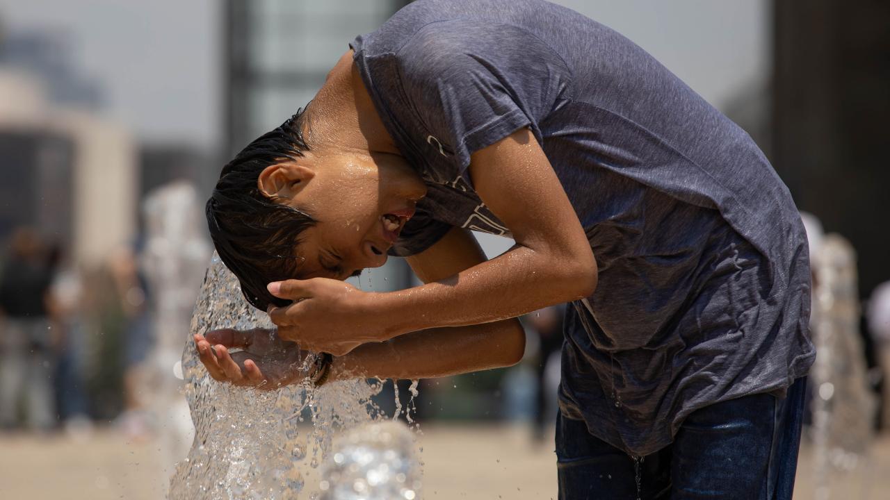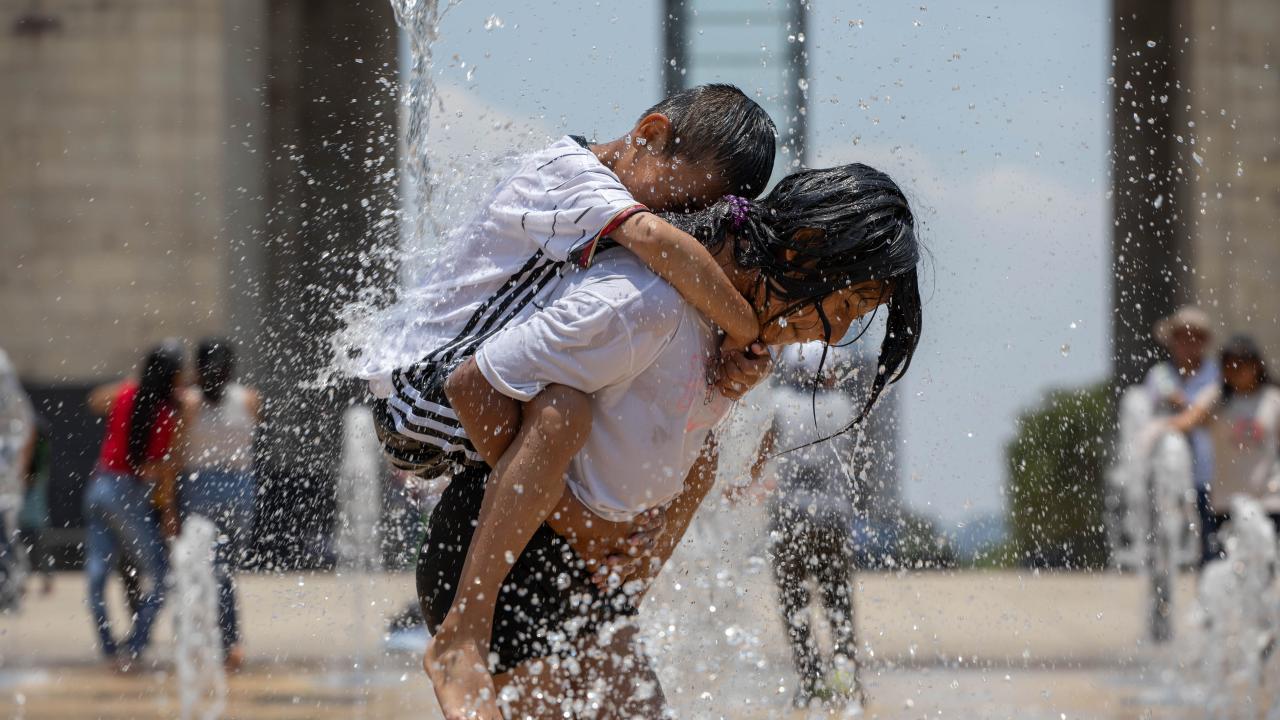 Meksika'nın başkenti Meksiko City'de vatandaşlar etkili olan yüksek sıcaklıklar sebebiyle Plaza de la Republica meydanında bulunan çeşmede serinledi.