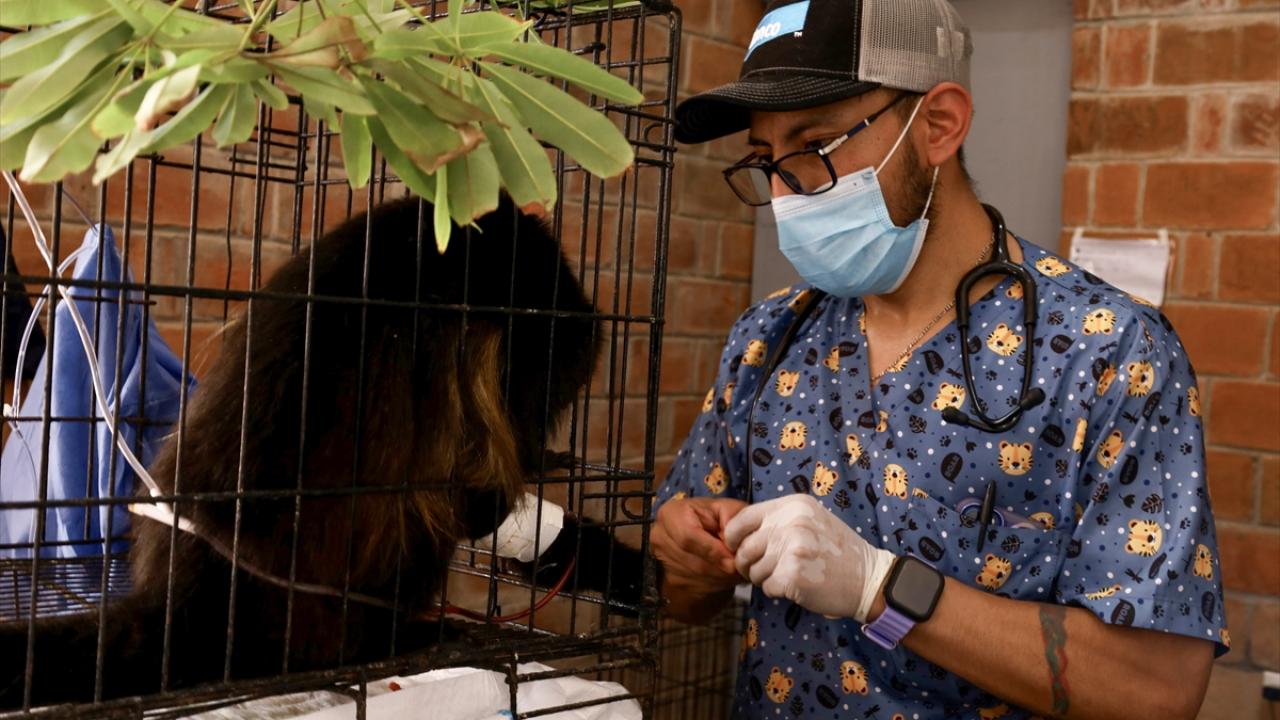 Meksika'nın Tabasco eyaletinde bulunan Cunduacan bölgesinde aşırı sıcaklar nedeniyle en az 83 maymun hayatını kaybederken, kurtarma ekipleri ve veterinerler halsizleşip ağaçtan düşen maymunlara su içiriyor.