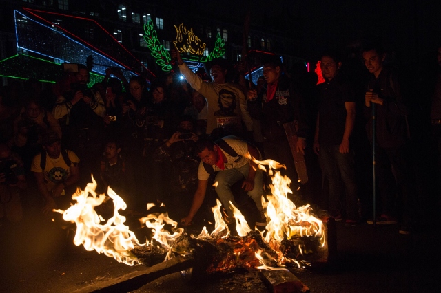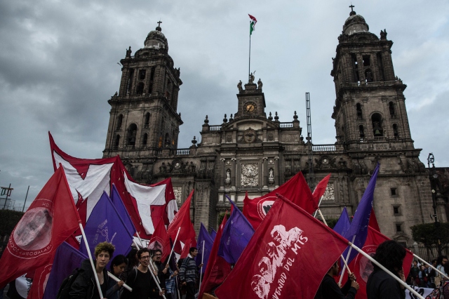 Meksika'da polis tarafından gözaltına alındıktan sonra kayıplara karışan ve kaçırıldığı iddia edilen 43 öğrenci için yaşanan olayın 2. yıl dönümünde Meksika'nın başkenti Meksiko'da protesto gösterisi düzenledi.