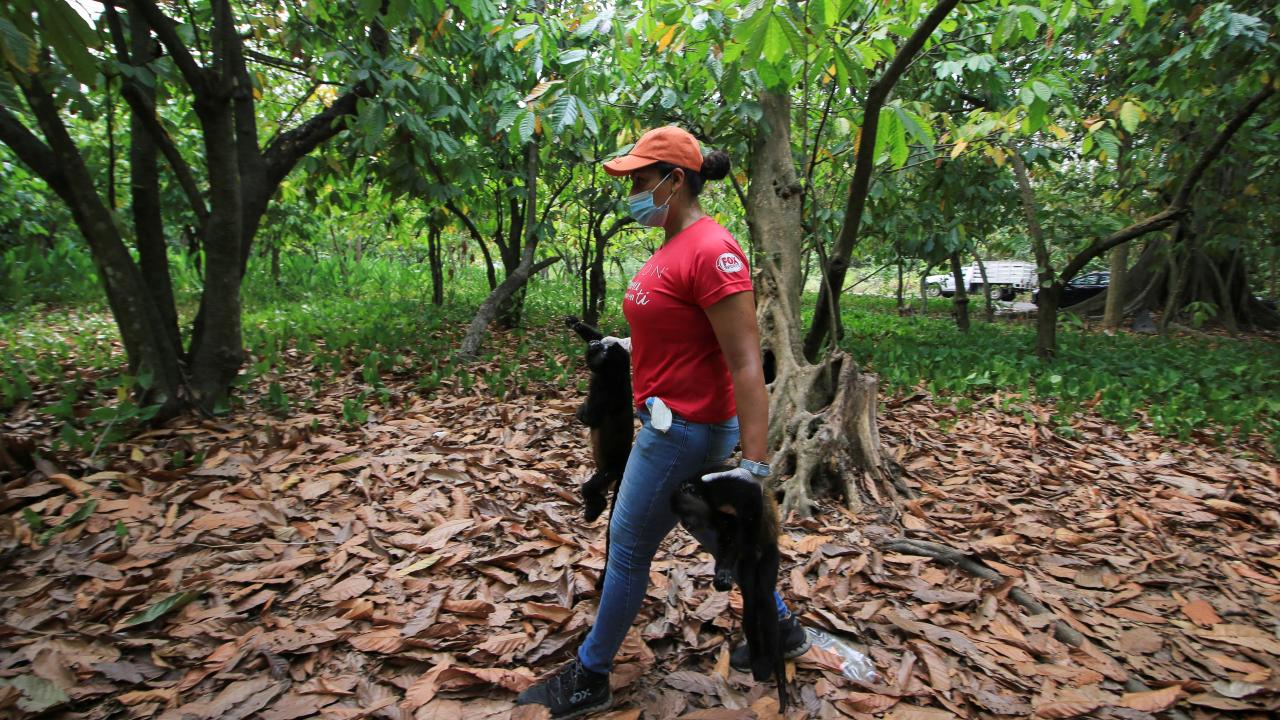 Tabasco, Camalcalco dışındaki bir ormanda gönüllüler, daha fazla ölümü engellemek için kovalarla su ve meyve taşıdı.