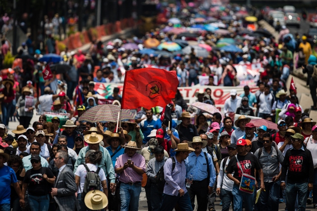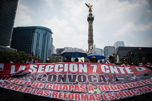 Meksika'nın Başkenti Mexico City'de, Meksika'da 15 Mayıs'ta kutlanan Öğretmenler Günü dolayısıyla çoğunluğunu öğretmenlerin oluşturduğu kalabalık hükümetin eğitim reformlarına karşı protesto gösterisi düzenledi.