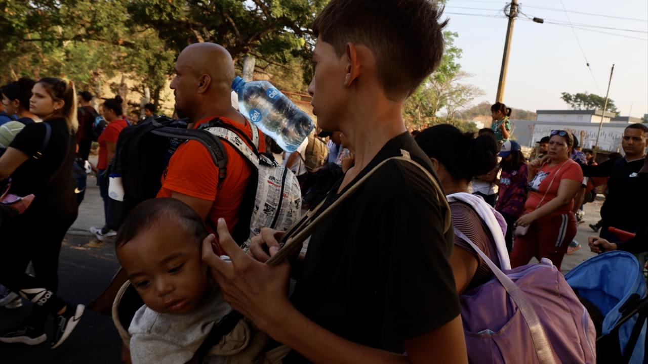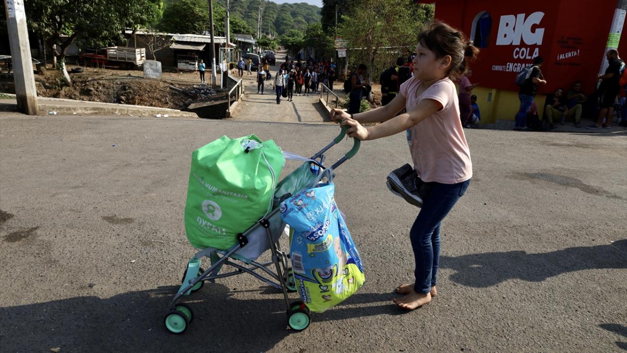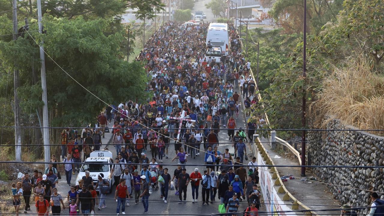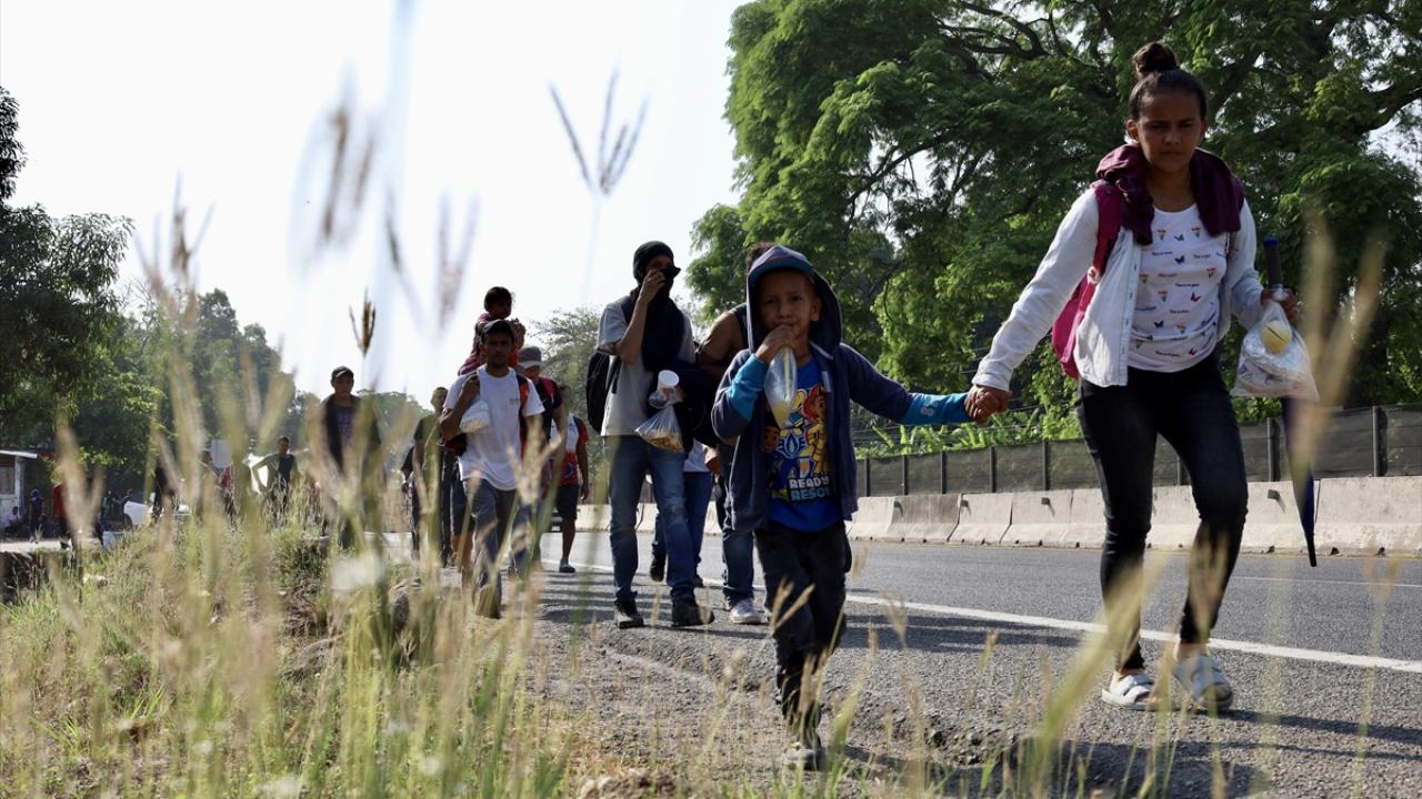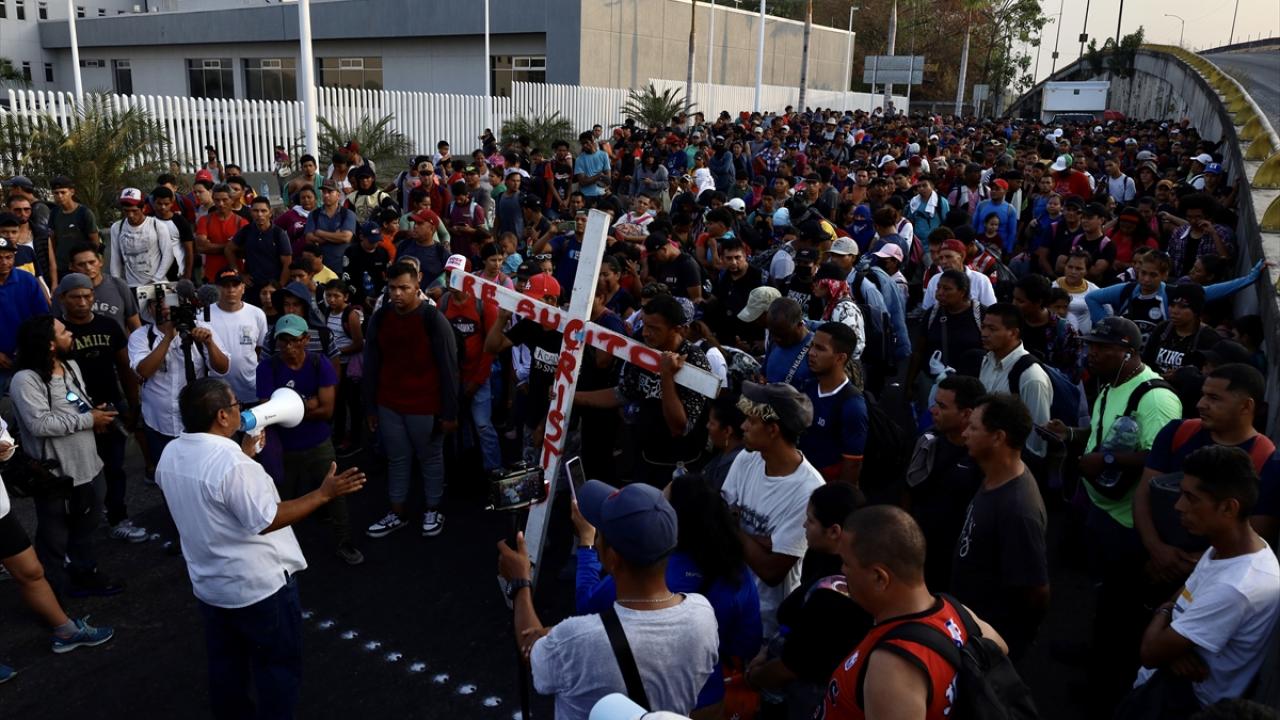 Meksika'nın Tapachula kentinde bir göçmen kervanı ABD sınırına ulaşmak için ülkenin güneyine doğru ilerledi.