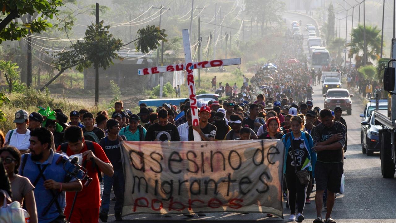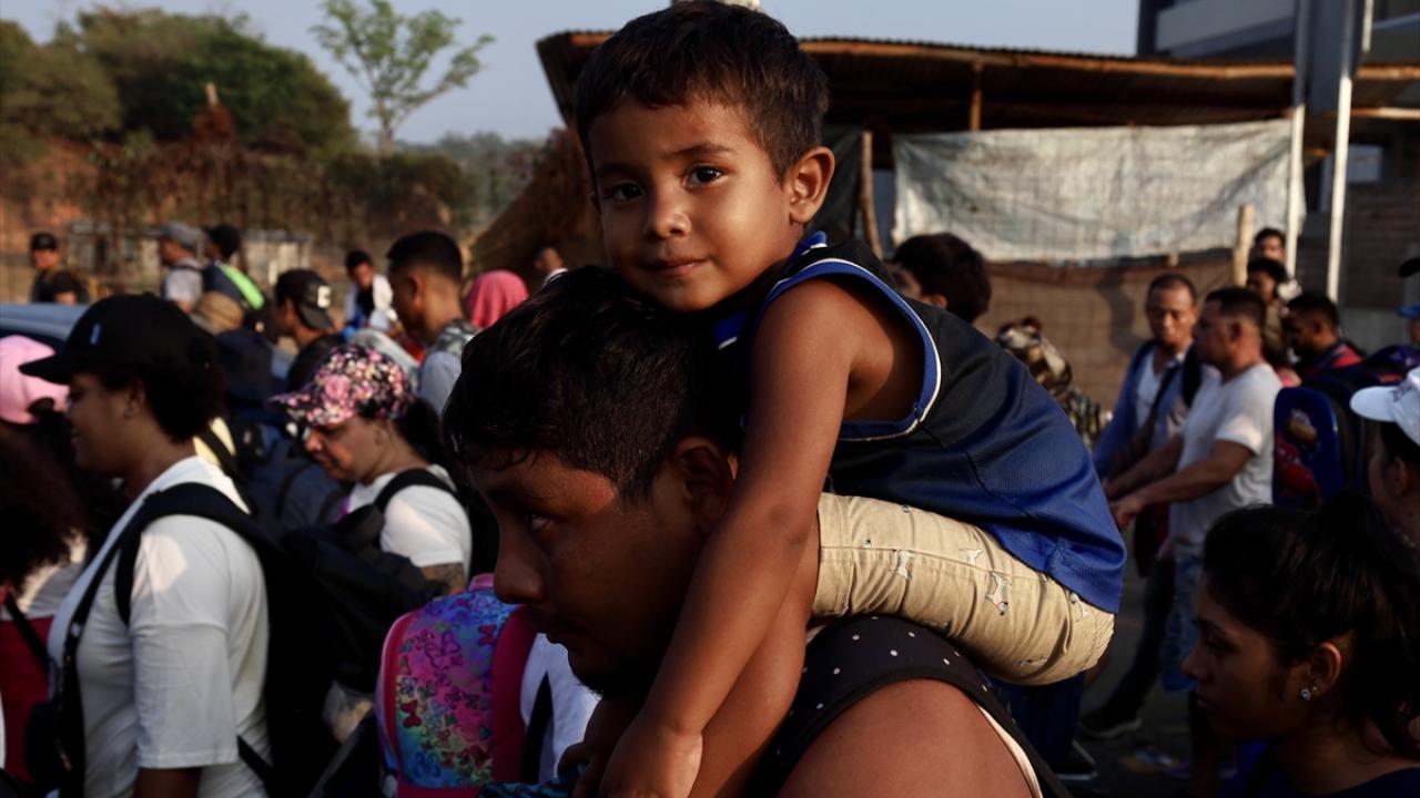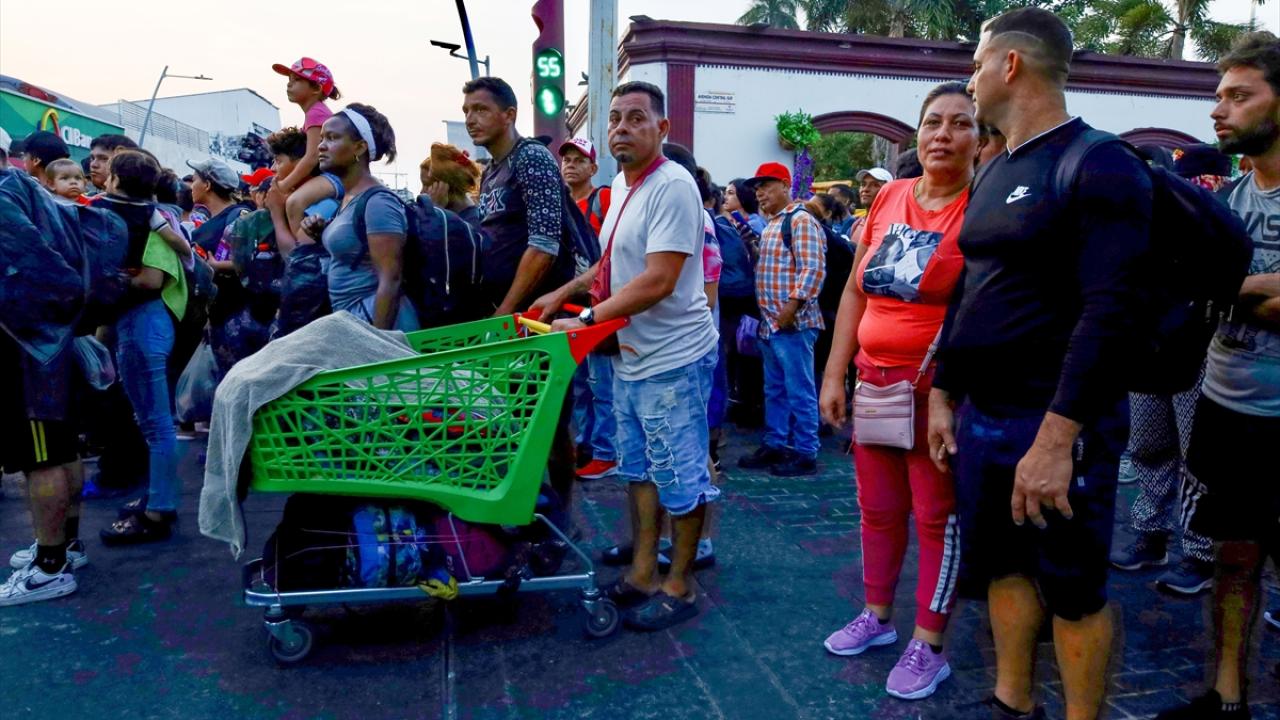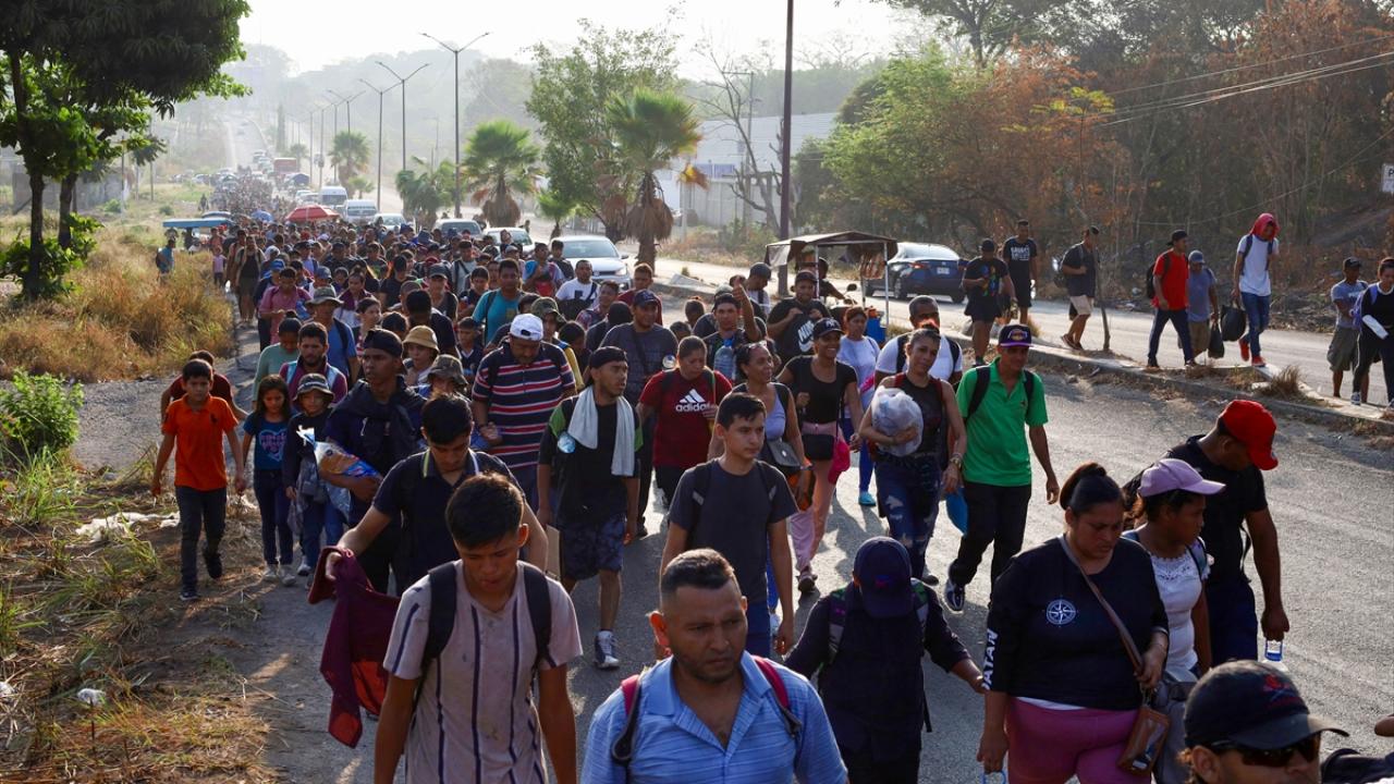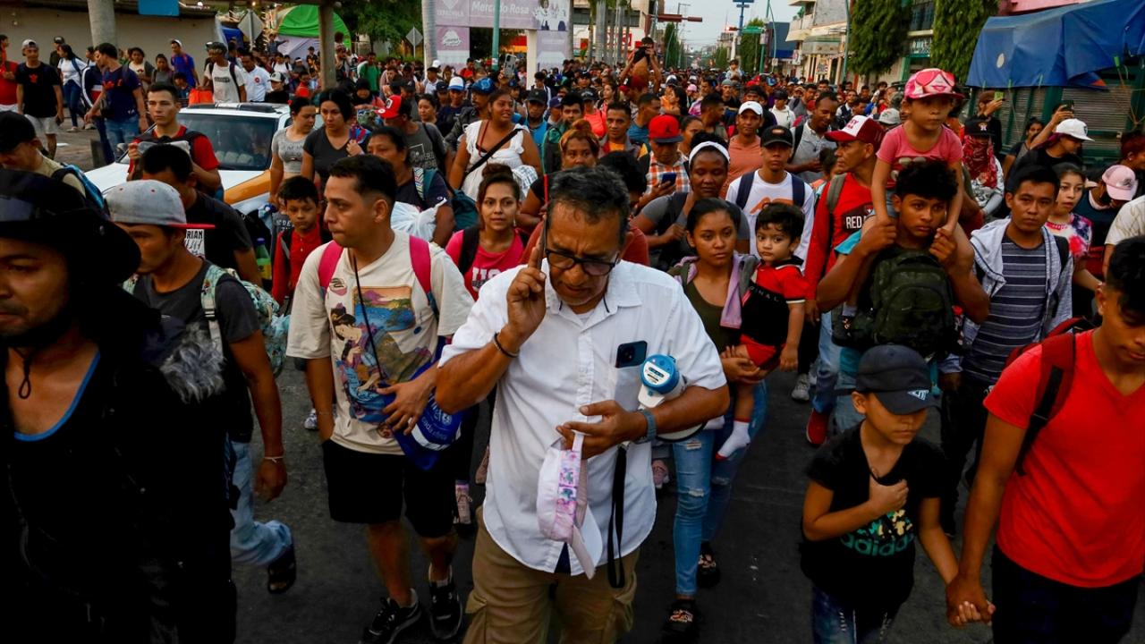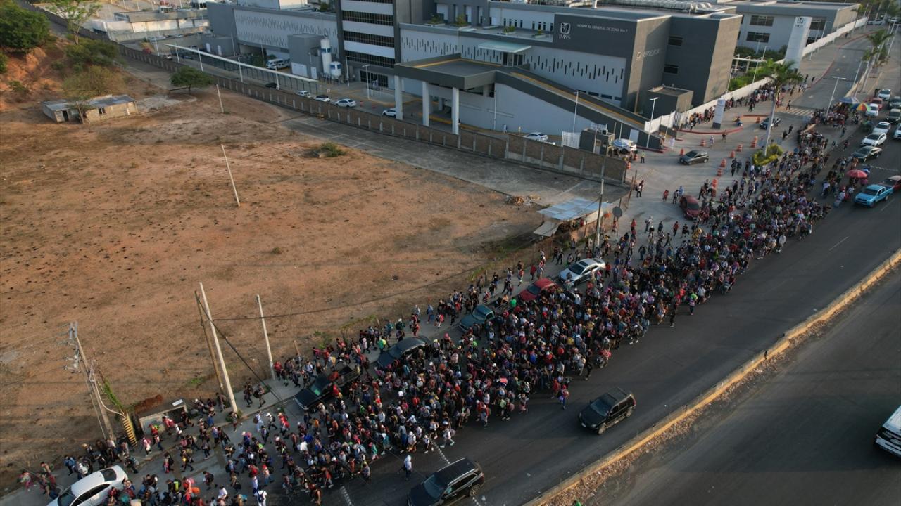 Meksika'nın Tapachula kentinde bir göçmen kervanı ABD sınırına ulaşmak için ülkenin güneyine doğru ilerledi.